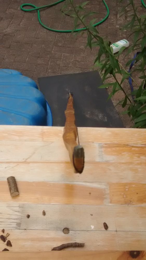 auf 26 Zoll hat der Bogen 43 Pfund, die Seilrolle hat mich verarscht, da wurde der Bogen schwächer als geplant. Deswegen habe ich den den Tillerbaum jetzt umgebaut.