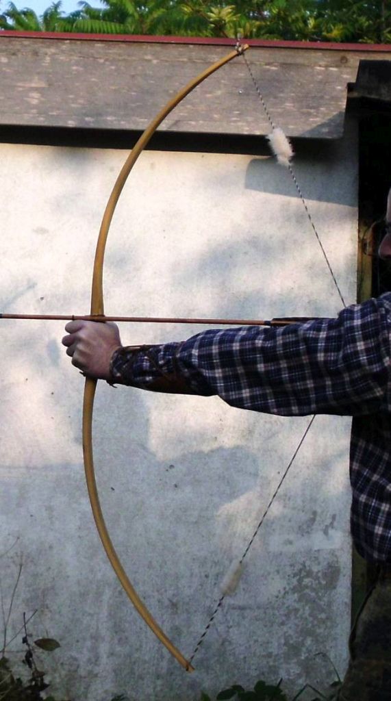 Holz: Osage, Länge N/N 129 cm, WA-Breite an den Fades 3,8 cm, Zuggewicht 52# auf 22"