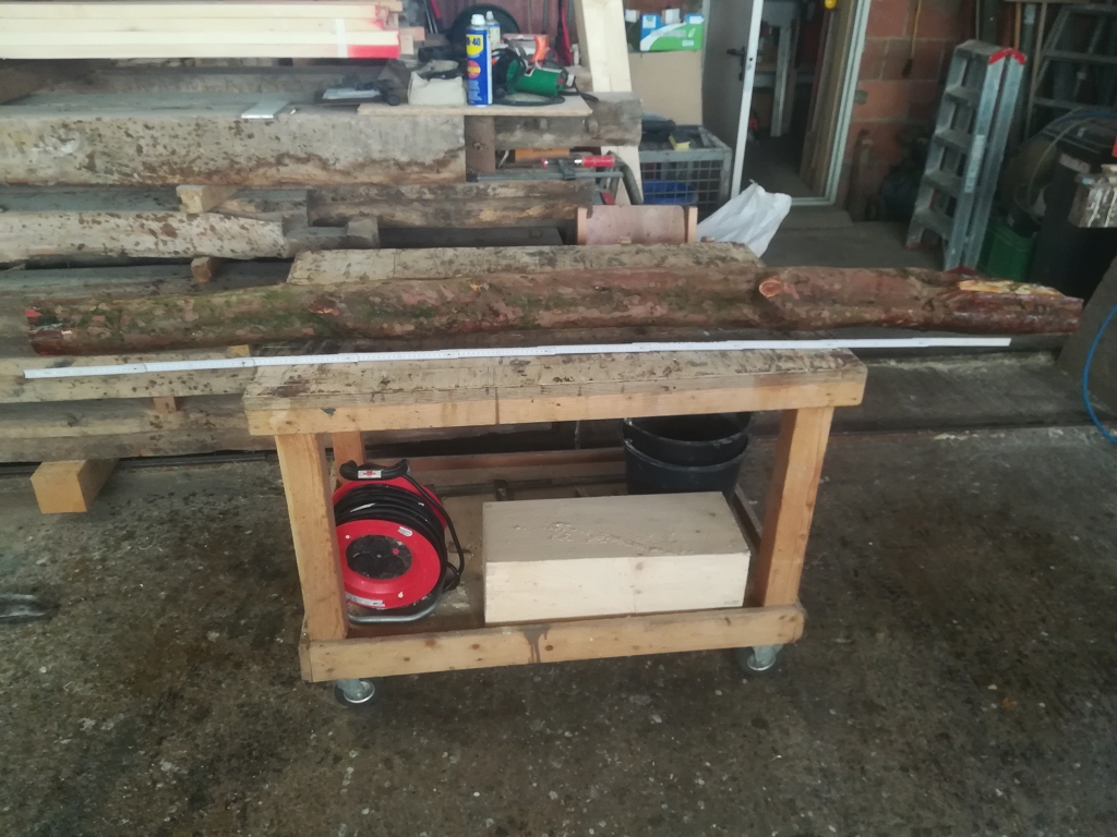 Ich habe heute einen Eibenstamm bekommen und mochte diesen Spalten und anschließend zum Trocknen Lagern. Nun zum Stamm, er ist ca. 2,20m lang wobei die nutzlänge kürzer sein wird, je nachdem was für einen Bogen ich daraus bauen will. Stammdurchmesser ist im Durchschnitt 13cm (12cm und 14cm) er hat für eine Eibe wenige kleinere Äste und hat einen leichten Bogen.. Die Jahresringe sind würde ich mal behaupten relativ eng.