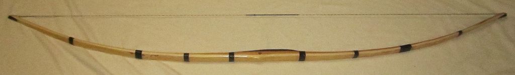 Der Bogen ist 181 cm NtN, hat 43# @ 29", Standhöhe etwas über 6". Den Griffbereich habe ich mit Purplewood unterstützt, da mir die Kerbe vom Span nicht so ganz geheuer war. Beim Tillern und Einschießen habe ich gemerkt, daß das Holz dazu neigt, entlang der Jahresringe bauchseitig leicht zu delaminieren (also keine Quer-/Stauchrisse, sondern Längsrisse). Deswegen habe ich den Bogen mit ein paar Wicklungen versehen, die den Rissen entgegenwirken sollen. Bislang hält er und schießt angenehm flott. Nockoverlays sind aus Wasserbüffelhorn. Finish mit Tru Oil (geiles Zeugs).