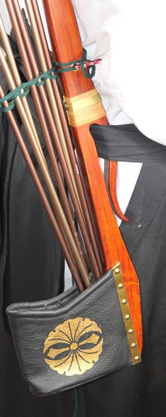 Der Shiko Köcher wurde am Gürtel ( Obi ) eingehängt und mit einer Kordel am Oberkörper festgebunden. Diese festbindung war auch unverändert wenn zu Fuß unterwegs.Die Pfeile selbst wurden noch durch eine extra Kordel am Köcher eingebunden. Beim Yabusame ( schießen vom Pferd im Galopp ) stramm gebunden daß nichts verruscht.