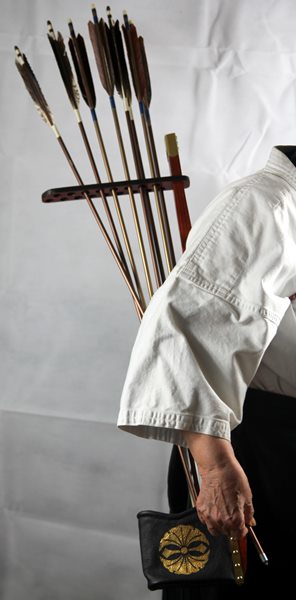 Der Shiko Köcher wurde am Gürtel ( Obi ) eingehängt und mit einer Kordel am Oberkörper festgebunden. Diese festbindung war auch unverändert wenn zu Fuß unterwegs.Die Pfeile selbst wurden noch durch eine extra Kordel am Köcher eingebunden. Beim Yabusame ( schießen vom Pferd im Galopp ) stramm gebunden daß nichts verruscht.