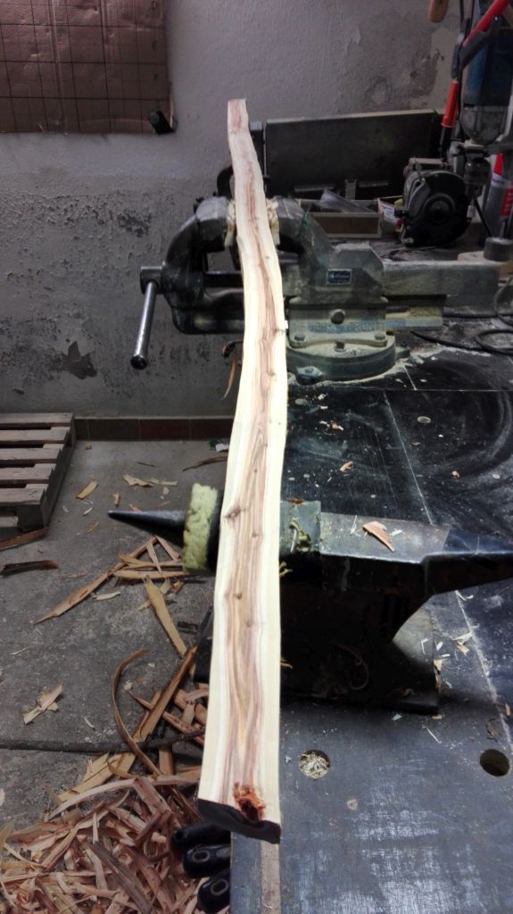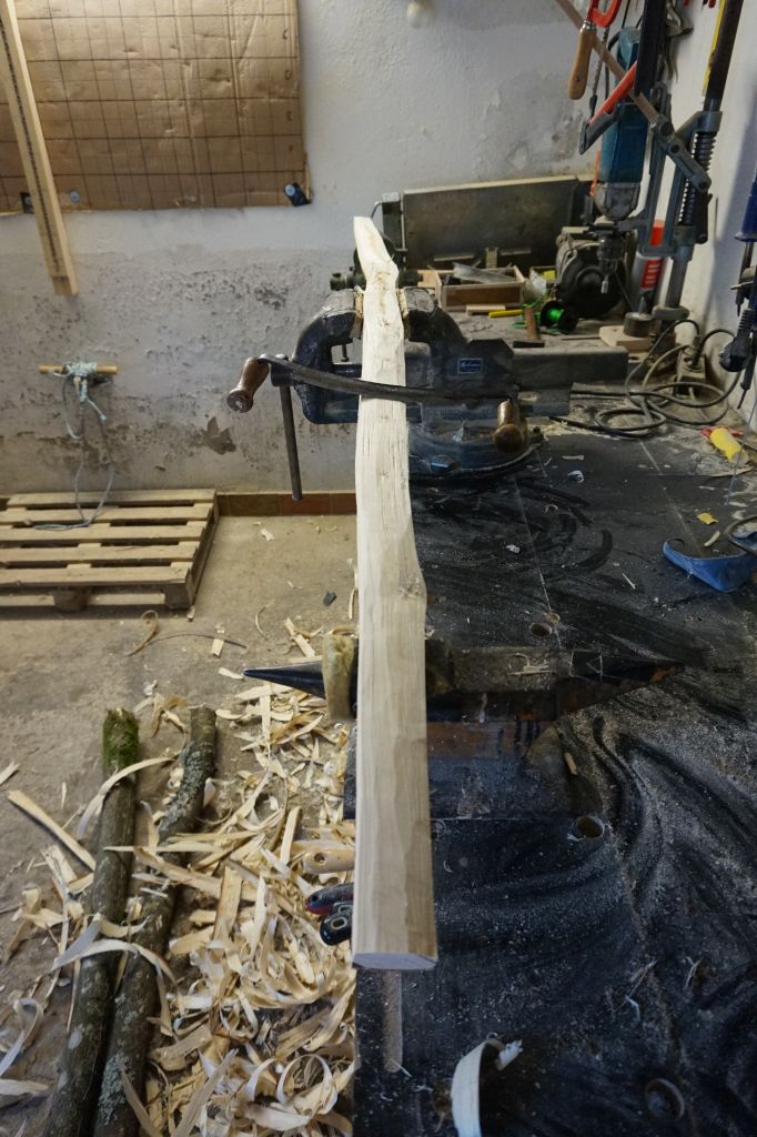 Die Dicke und die Breite wurde nur mit dem Ziehmesser reduziert. Wie schon gesagt habe ich den Sap auf 168cm gekürzt.