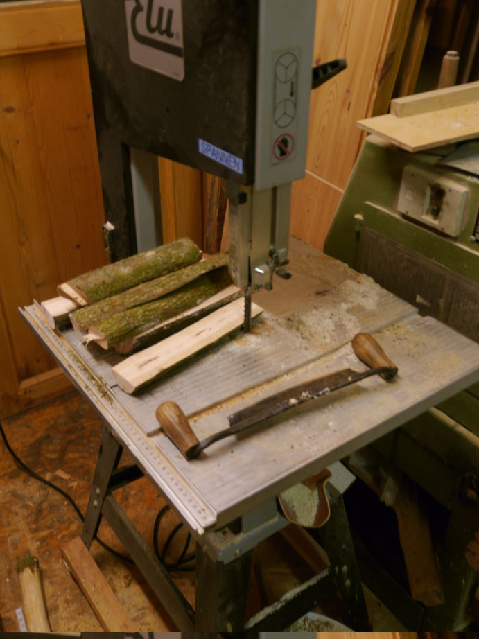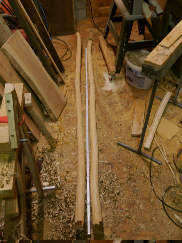 Die beiden gleich ueber die Bandsaege geschubst (ja, ich geb's zu. ich bin eine faule Sau) und mit dem Ziehmesserruecken abgerindet: