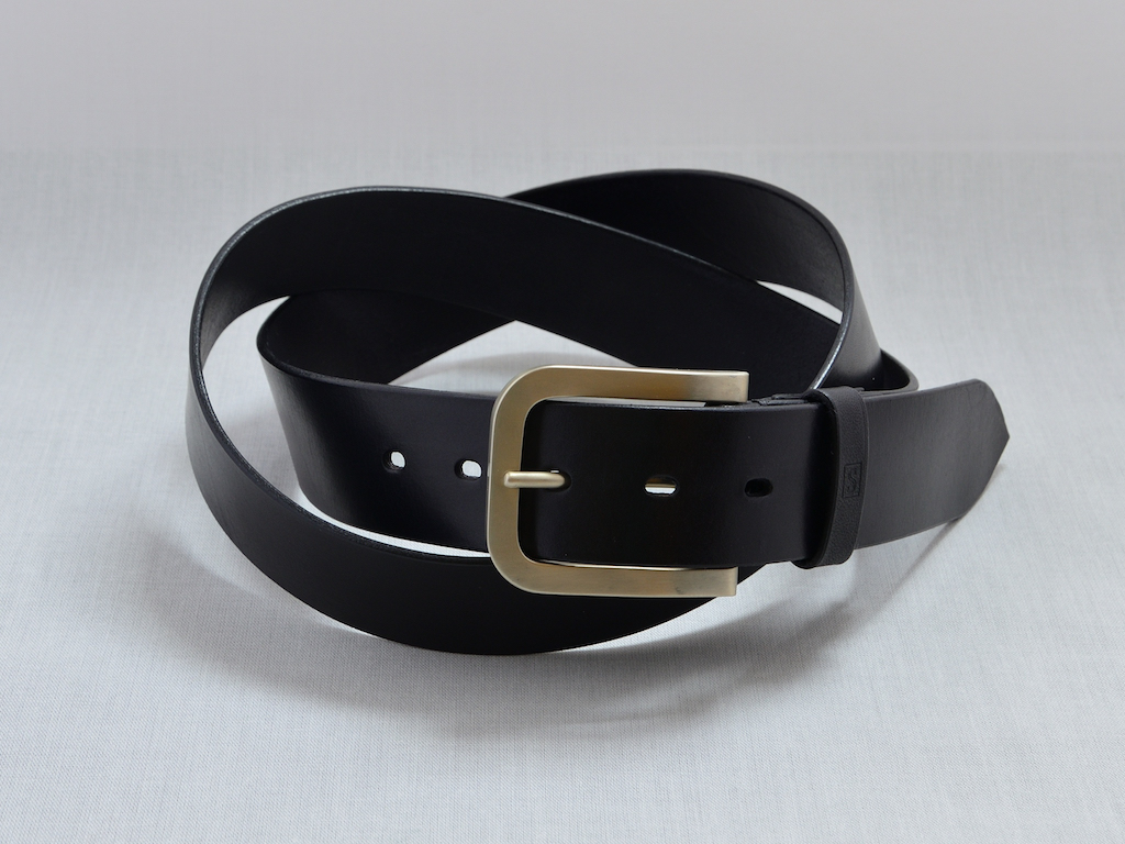 Schnalle komplett aus Neusilber, 40 mm breite Öffnung, 3 mm Leder schwarz gefärbt. Derzeit ist der Gürtel noch über 130 cm lang, kann aber einfach gekürzt werden.