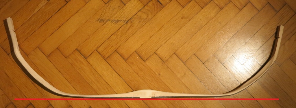 Der Bogen wiegt jetzt genau 500g, das sind 100 g mehr als ohne Sehnen, wovon etwa 65g Sehnen und 35 g Kleber sind. Sollte eher 50-50 sein, wenn ich mich nicht irre, kann also sein dass ich den Leim dicker hätte lassen können.