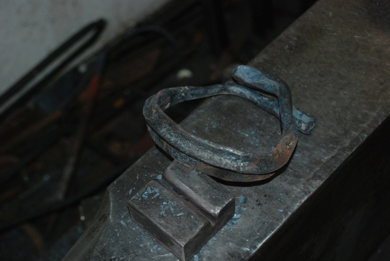 Weiter gehts und zwar mit dem Steigbügel. Ausgangsmaterial war ein 15x15 mm Vierkantstab den ich mit Hilfe eines extra angefertigen Gesenks in die typische Steigbügelform gebracht habe (siehe Bild Originalarmbrust).
