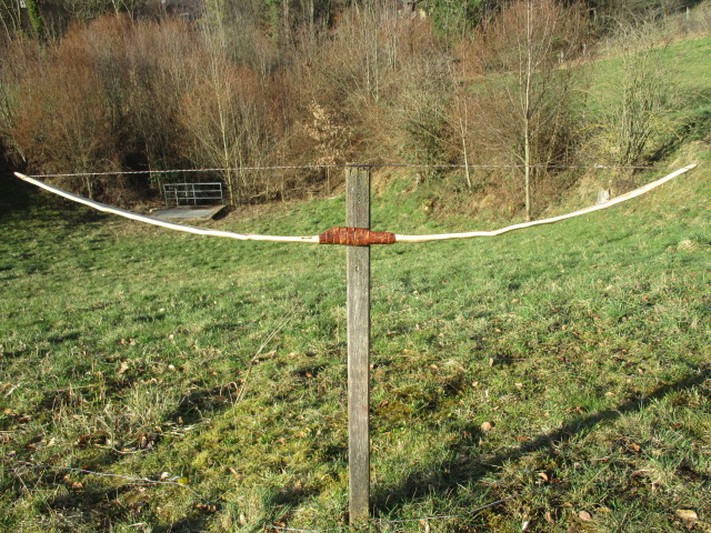 Mal die selten verwendete Kornelkirsche: toll! Ein echter Charakterbogen, ein Hingucker. Die Welle klasse umgesetzt. Ja, Kornelkirsche ist fein und dicht und muss poliert werden, daher gefallen mir die groben Schnitzer am Bauch überhaupt nicht. Die Schlehenrinde paßt eigentlich gut, aber die Wicklung mit den vielen Lücken, mmh, nee! ::) ::)
