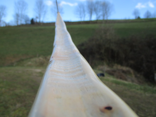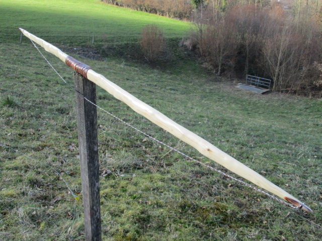 Da ich die letzten 2 Winter einige schöne Kornelkirschstaves ergattern konnte, habe ich mir nun mal etwas Zeit genommen, um einen davon zu "verwursten". Herausgekommen ist dieses Bögelchen mit leicht gehöltem Bauch vielen Wellen und Dellen.