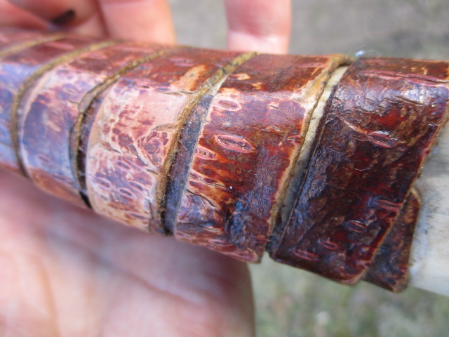 Das gemäckelt wird, hab ich schon erwartet; vor allem bei dem grob gewickelten Griff. :D Ich fand den erst auch etwas derb, hab ich auch schon eleganter gemacht. Ich wollte aber die Streifen nicht schmaler machen, da sonst der Charakter der Rinde etwas flöten gegangen wäre.Die Breiten ließen sich halt nicht so eng wickeln..allerdings greift sich das sehr schön.