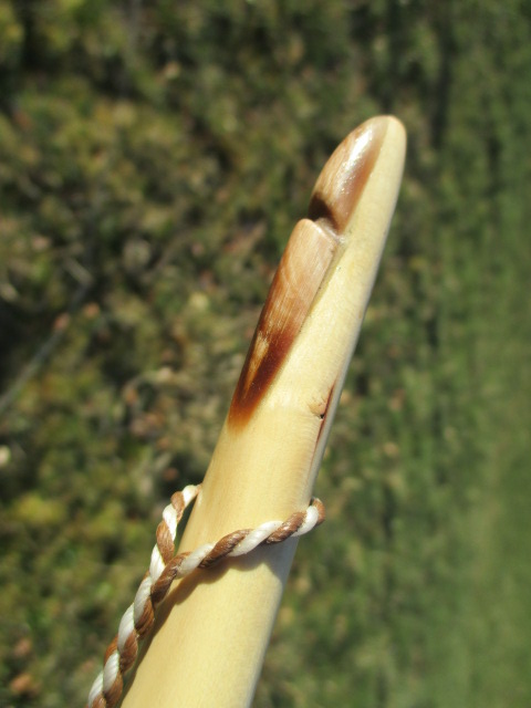 Griffwicklung aus Schlehenrinde. am Bauch habe ich einige Schnitzspuren belassen, ansonsten hochpoliert(GEIL!) und mal 3 Schichten Hartöl; ich wollte den mal "shiny". O0