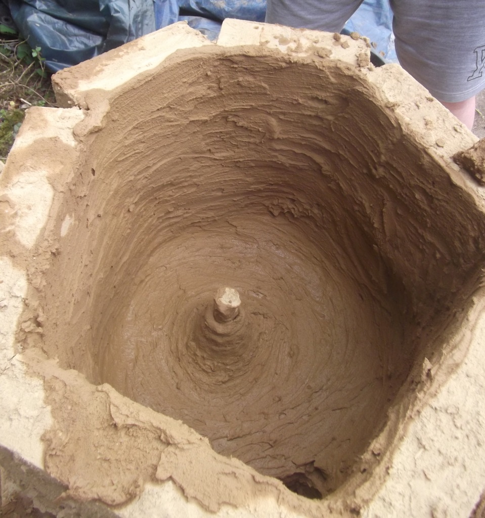 Der Ofen ist Innen bereits vollständig verkleidet, es wurde auch bereits eine ersten Außen-Lehmschicht aufgebracht