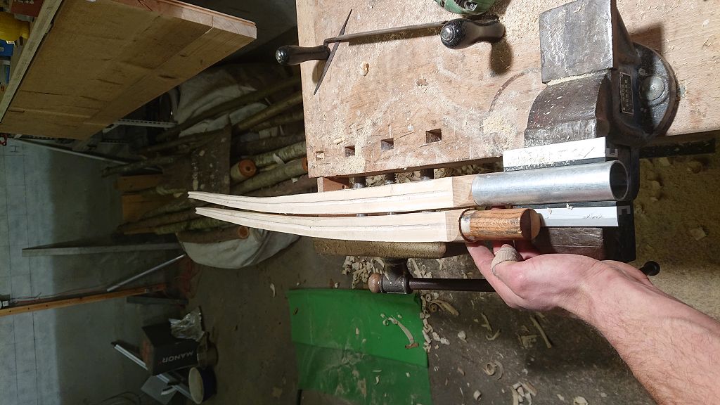 Die sind bewusst etwas steiff. Beim letzten Bogen habe ich mir beim Übergang von Wurfarm zum hohen steiffen Ende eine grausige Schwachstelle reingetillert, werde es desshalb so lassen, besser zu steif als zu schwach, oder nicht?