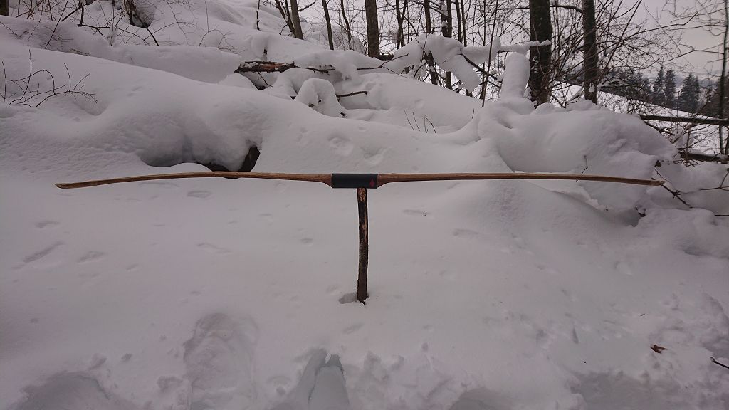 Was kann ich dazu sagen. Das Ausgangsmaterial war ein 5cm dickes und 100cm langes, verzogenes Stück Holunder das schon beinahe im Ofen gelandet wäre. Per Zufall ist mir bei einem Besuch meines Vaters ein Aluminiumrohr ins Auge gestochen. Sofort hat sich in meinem Kopf ein Bild eines Take Down Bogens gebildet. Wieder zu Hause sofort ans Werk. Holunder halbiert, Aluminiumrohr abgelängt und im Schraubstock zusammen gedrückt und der Rest hat sich dann einfach irgendwie Freestyle ergeben :) Mit dem Gesamtergebniss bin ich zufrieden, schiesst sich toll und ist auch noch praktisch. Das Finish aus Beize und Ölen/Wachs wirkt sehr Rustikal und hat irgendwie was, denn der letzte Bogen aus Holunder hat nach dem ölen einen leichten Gelbstich gekriegt, was ich sehr bedaure.