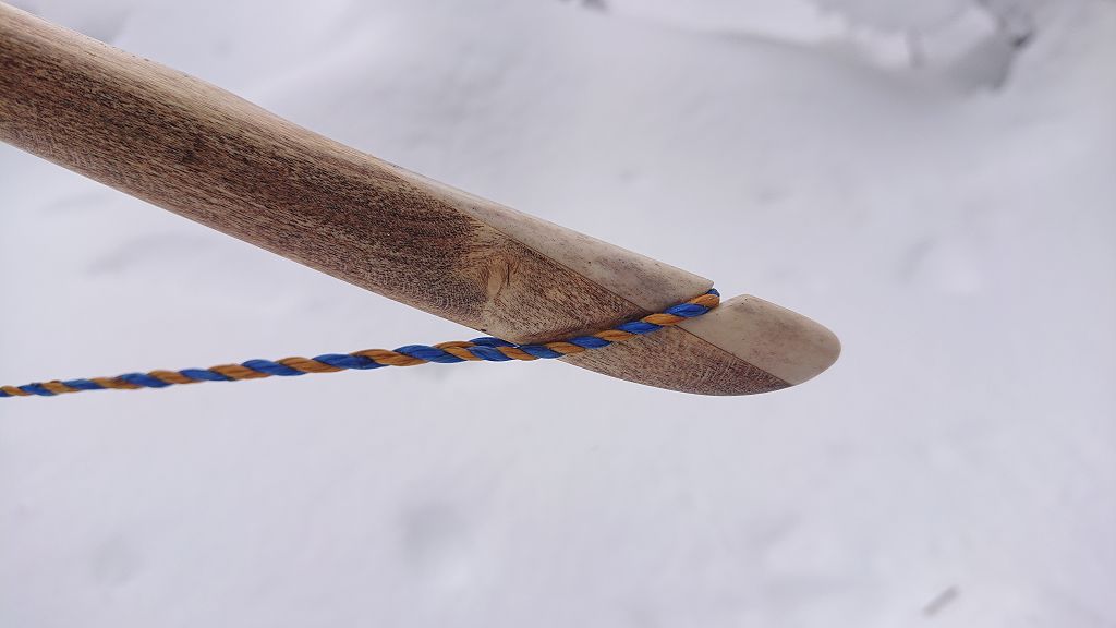 Material: Holunder, Eiche(Verstärkung im Griff), Rehhorn(Tipps), Aluminiumrohr(Griff/Takedownhülse)