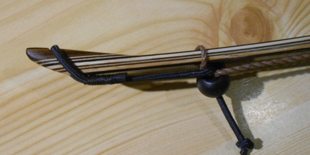 Jetzt habe ich zwei Bögen mit Sehnen die offene Öhrchen an beiden Enden haben. Und die Sehnen fallen ständig weg. :-\