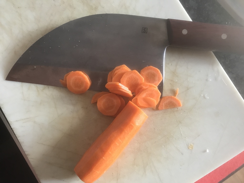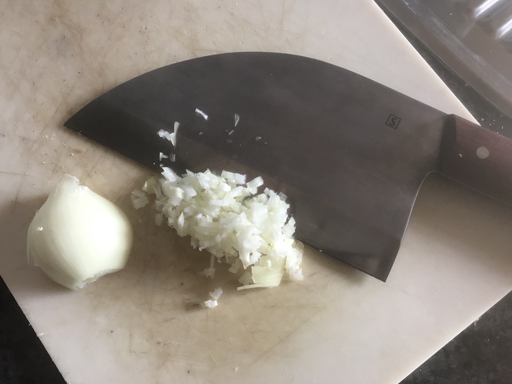 Ich musste das Teil mal in der Küche ausprobieren und habe eine Zwiebel und Karotte zerlegt. Wenn man schwere Messer mag, das Gewicht erledigt schon viel der Arbeit. Ich hätte es für mich etwas dünner und leichter gemacht.