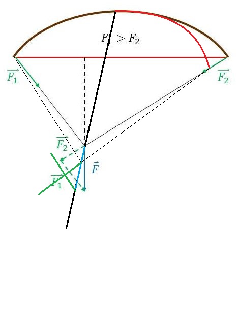 Die schwarz-gestrichelte Kraftlinie verläuft z.B. falsch, denn sie muss ja weiterhin zwischen Zuggpunkt an der Sehne und Druckpunkt am Griff verlaufen!