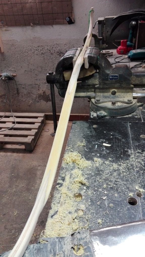 Ich mache die Wicklungen immer bei der ersten Lage, so kann ich die Sehnenschicht zum Schluß schleifen oder die Schicht dünner machen , wenn der Bogen zu stark geworden ist.