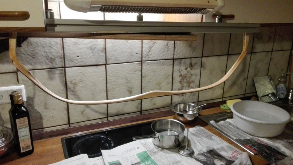 Ich war ein wenig erschrocken, als ich heute nach den Bögen geschaut habe. Die Osmanen trocknen jetzt erst seit 1 Woche und ich musst schon nach spannen, da das Seil keinerlei Spannung mehr aufwies. Das Wiegen der Bögen bestätigte die Trocknungsphase, denn beide bögen haben in einer Woche 10g verloren.