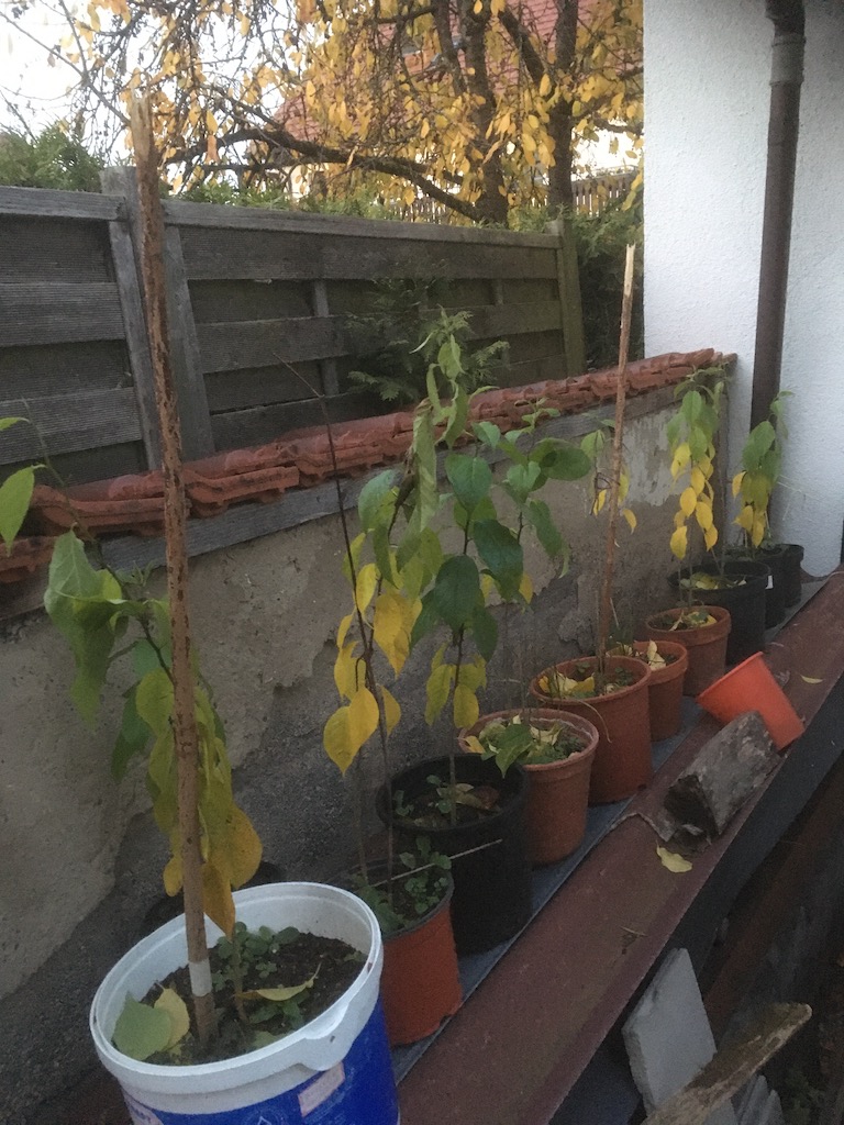 Sobald Frost komm ziehen sie in die Garage um. Und nächstes Jahr muss ich mir überlegen, wo ich sie einpflanze. Die anderen habe ich einem Freund geschenkt, der eigenen Wald hat in der Hoffnung, dass er sie einpflanzt.