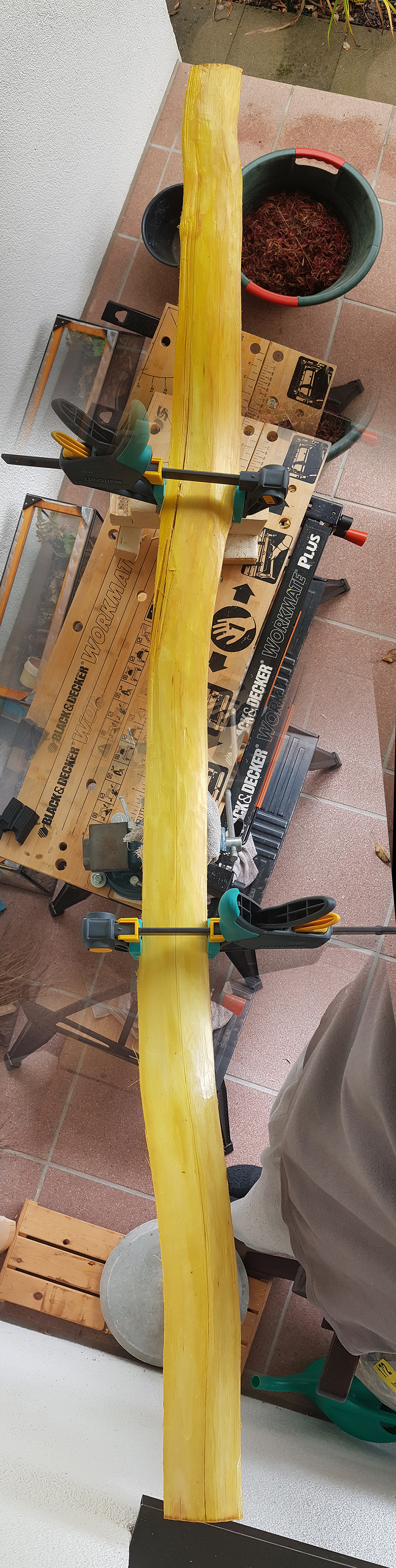 Mein 6.Bogen soll ein Osage-Recurve werden. Das Holz wurde im März 2019 in Ungarn geschlagen - im Oktober 2019 hab ich Rinde und Splint entfernt. Und da waren Trocknungsrisse