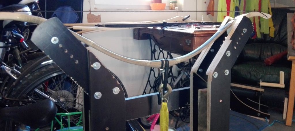 Da mir der Ägypter um die Ohren geflogen ist, hatte ich ein wenig Angst, dass es vielleicht doch an den Sehnen liegt und er mir auch bricht. Ich war hin und her gerissen, aber eins wusste ich... wenn ich jetzt nicht gleich weiter mache, habe ich später Angst anzufangen. Also Bogen runter und ab auf die Bogenpresse, immer im Hinterkopf sei vorsichtig. Da der Assyrer schon ein Ungleichgewicht der beiden Wurfarme zeigte, habe ich direkt Horn auf der Presse abgetragen und erst wie er gleichmäßig bog wurde er aufgespannt. Er musste ganz leicht gerichtet werden und blieb auf der Presse aufgespannt bis zum Abend. Jetzt kam er auf den Tillerstock und das sah schon recht gut aus. Er bog gleichmäßig und war ab 2,5 bis 4 auf beiden Seiten noch etwas steif. Also habe ich da noch Horn abgetragen. Die Wicklungen in der Mitte habe ich entfernt, da ich ca 1mm bis zu den Tips fast 1,5mm Horn abtragen musste. Jetzt blieb er über Nacht aufgespannt und nach 17h habe ich heute weiter gemacht. Er war bei 28'' Auszug an den Enden noch ein wenig steif. Da habe ich noch Horn entfernt und siehe da er biegt perfekt. Also erst ein paar Pfeile mit halben Auszug geschossen und dann mit ca. 30'' Auszug(nicht ganz Vollauszug). Bei der Auzugsfotos habe ich 85#@30'' auf den Fingern und war vorher 40 Bahnen schwimmen.(Also schon recht müde und fertig) Bei 31,5'' hat er 90# und da er die ganze Nacht aufgespannt war, wird er noch min 5# zulegen. Ich lasse ihn erstmal so. Kennt ihr das Gefühl, wenn der Bogen direkt passt? Genauso war es bei dem Bogen ;D geschossen und direkt gut gruppiert, trotz dem hohen Zuggewicht. Die Pfeile hämmern da raus, da kannst du den Pfeilen nicht mehr zu gucken beim fliegen.. ;D ;D