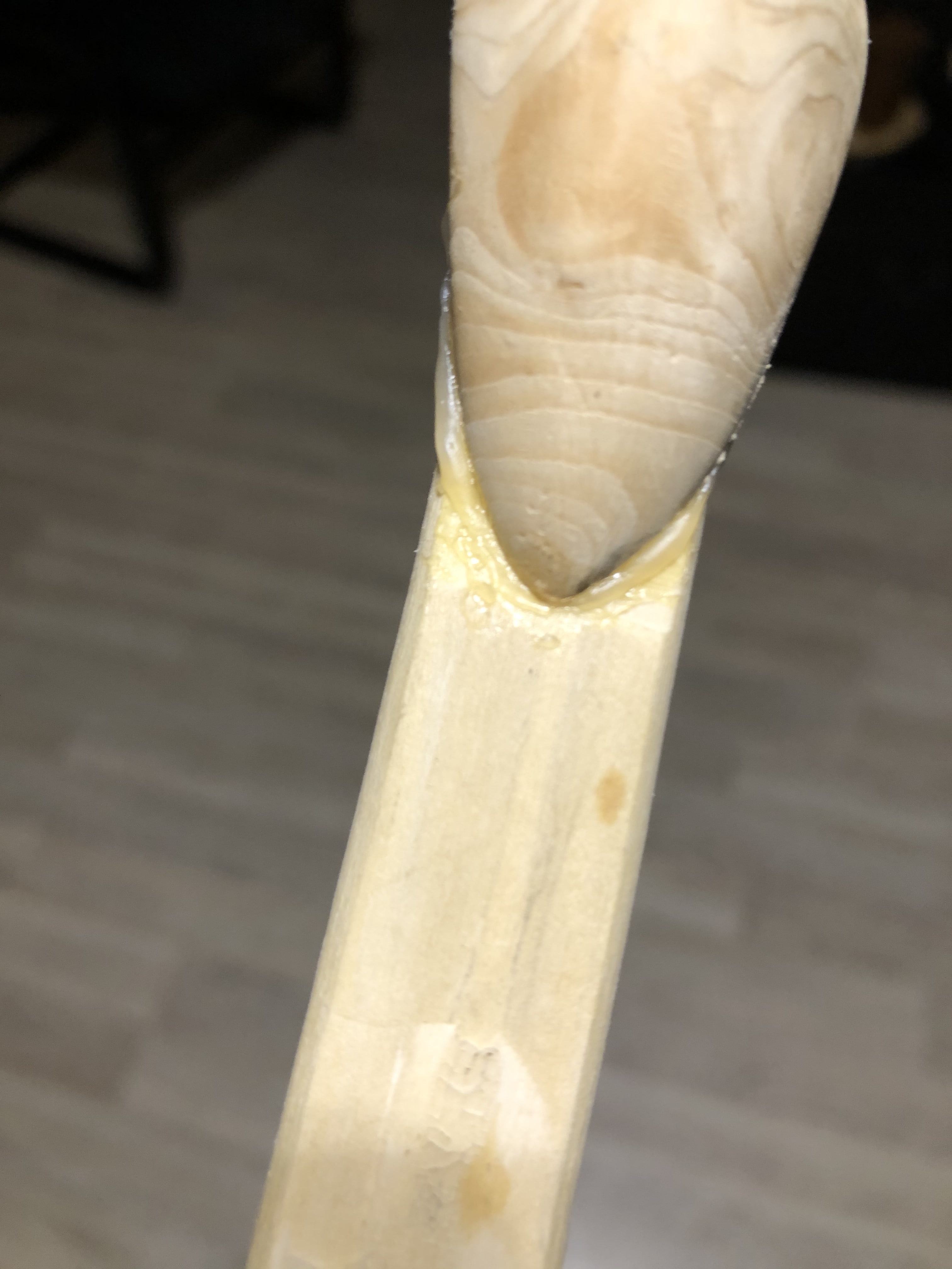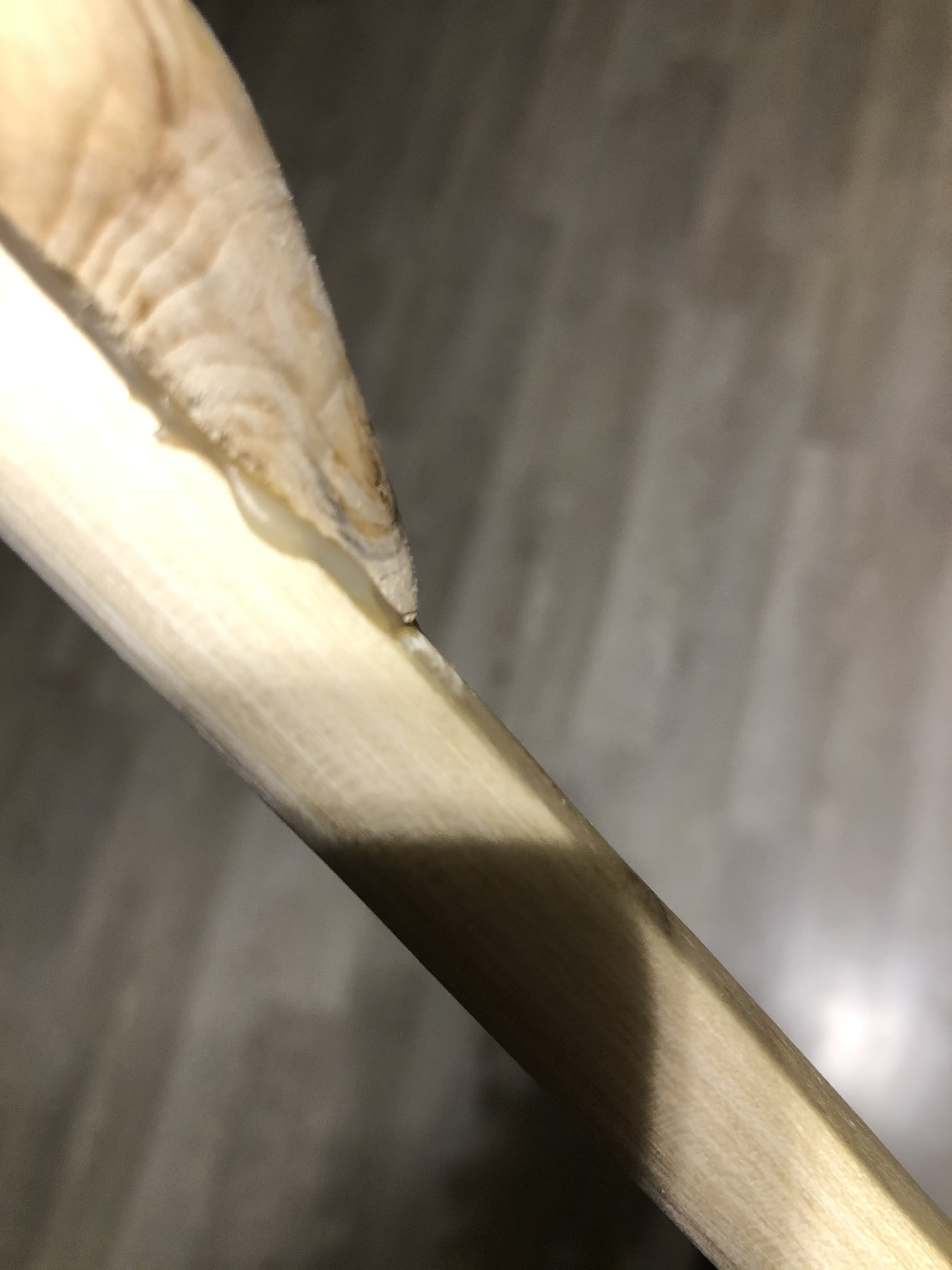 Kann es sein, dass das Problem rechts vielleicht im griffnahen Bereich liegt? Ist das komplette erste Drittel zu steif? Muss da ordentlich was runter? Oder ist es nur der Knubbel, vielleicht?