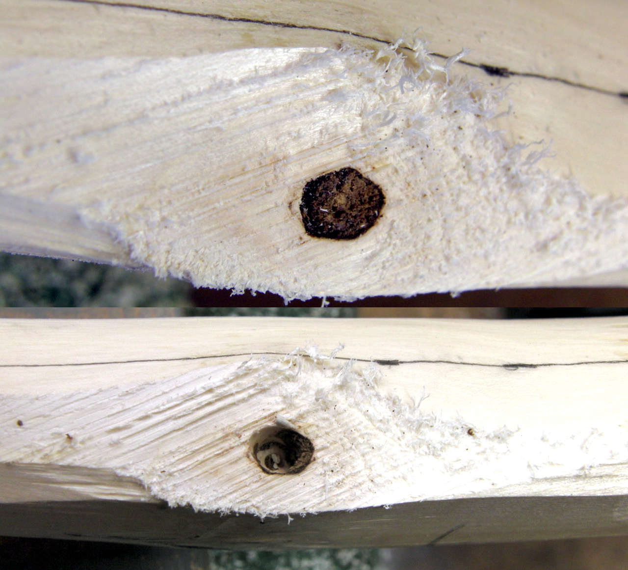 Somit hatte der Sapling einen anfänglichen Wassergehalt von 36,4% und der Stave hatte vor Beginn der Arbeiten eine Holzfeuchte von 7,5%.