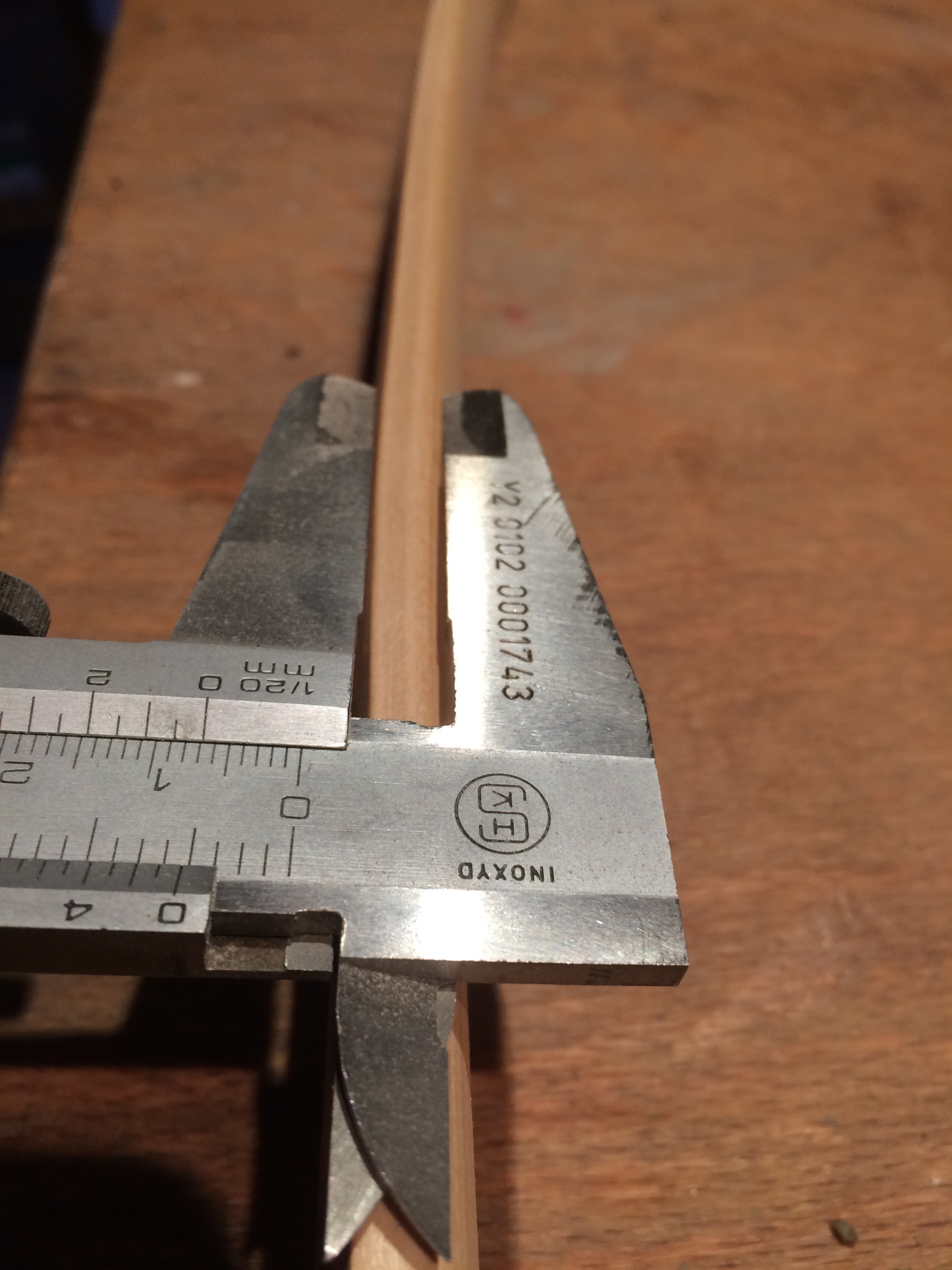Zum Wiedereinstieg hab ich mir ein, vermeintlich, einfaches Projekt vorgenommen: Einen Flachbogen aus einer nicht näher bekannten Kirschart. Den Stave hab ich vor Jahren aus einem Polder gezogen. Da war ausser der Rinde nichts zum Bestimmen vorhanden. Das paßt aber schon weil das Zuggewicht lediglich irgendwo zwischen 30 und 40 raus kommen soll. Das müßte mit jedem Prunus zu machen sein. Soweit nichts besonderes.
