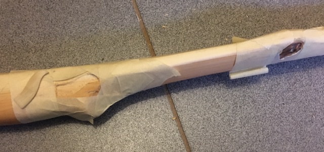 Das Ganze dann mit Eule300/Schleifstaub-Mischung eineuliert und damit auch die Mulde im Totast zugespachtelt. Morgen kann ich das dann alles schleifen und mit dem Finish weitermachen.