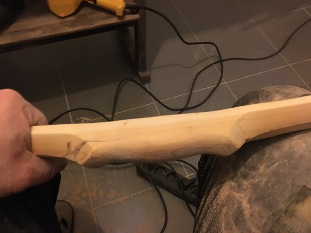 Nachdem das Einschießen erfreulich verlaufen ist, wurde dann endlich der zum Tillern klobig gelassene Griff ausgeformt. Danach noch einmal komplett geschliffen und eine Schicht Tungöl drauf.