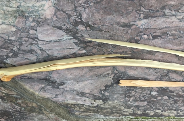 Die ersten gut 50 Pfeile hat er schön flott und leise geworfen. Er hat sich dabei auch nicht (durch Zurückkriechen der diversen Biegereien) verzogen... ...und ist mir dankenswerterweise auch nicht um die Ohren geflogen... Jetzt darf er sich auch „Bogen“ nennen...