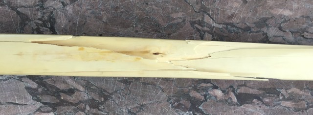 Ich schätze - anhand des Bruchbildes -, dass der Rücken an dem Totastknubbel gerissen ist.