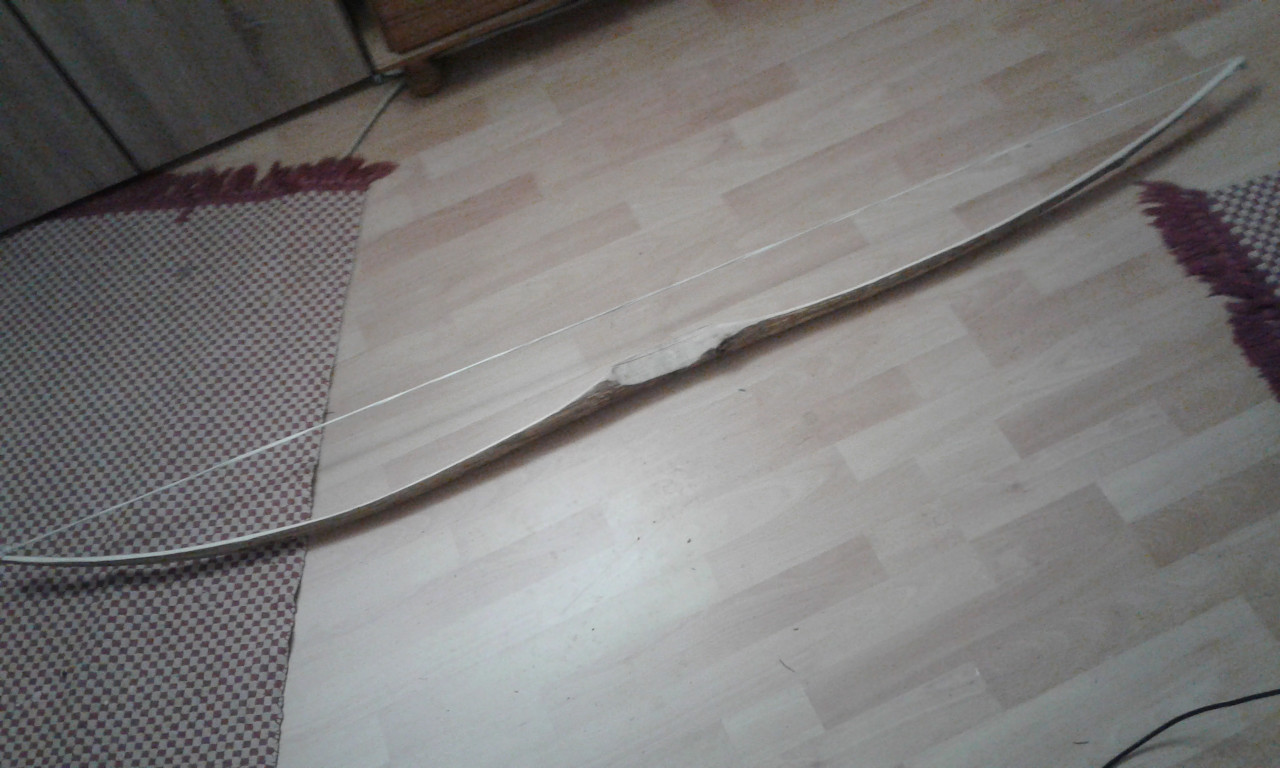 Den Bast hab ich bewußt draufgelassen,ich musste mich auf Funktion konzentrieren. Der gewaltige Setback (zusammen anfangs immerhin 28cm) hat mir etwas schlaflose Nächte bereitet.Knitter hing als Damoklesschwert die ganze zeit in meinen Gedanken. Nuja,da half wohl die Restfeuchte.Dann war ich aus Zeitnot auch noch zu hudelig, so das ich schon wieder einen Verschenkbogen hab. Immerhin ist diese nasse Flitsche recht flott im Abwurf, deshalb die für meine Verhältnisse recht leichten Pfeile (Fichte volle länge, 60er Spine, Gewicht mit 125gr Spitze nur 31g),ich hoffe ja auf ein paar Pfund mehr nach dem endgültigen Durchtrocknen.Vllt dann die Enden etwas flippen und den Tiller etwas verbessern.. man wird sehen.