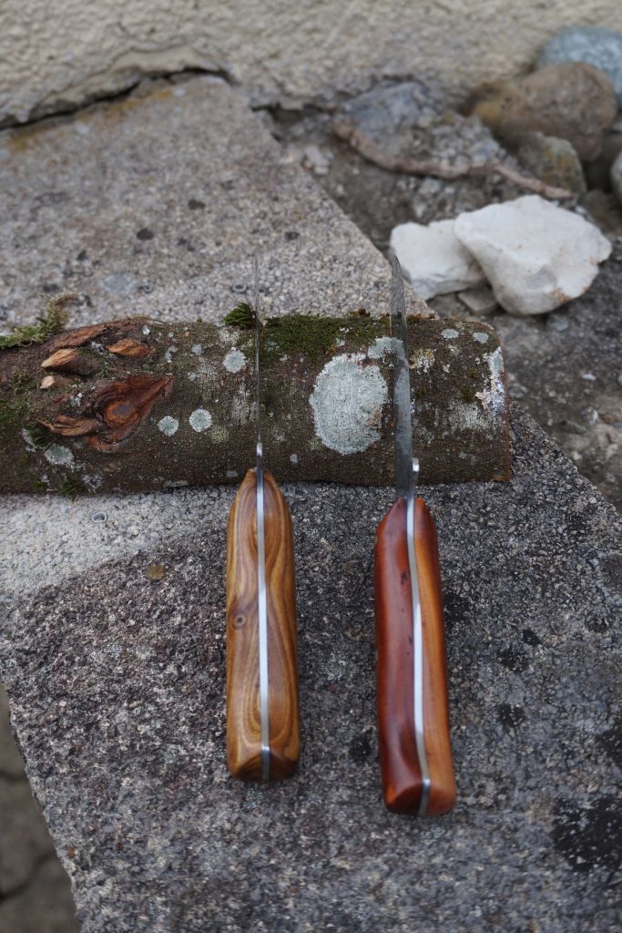Heute zeige ich euch meine ersten 2 Messer , die selbst aus einem 3mm Sägeblatt hergestellt habe. Für die ersten zwei bin ich ganz zu frieden. Sie sind nicht von einem Messer-Meister, aber das war auch klar , da ich ja zum ersten mal Messer baue. Das Messer mit dem Zwechtgenholz-Griff ist für einen Freund zum Geburtstag. Das Ganze hat auch eine symbolische Bedeutung... Die beiden Klingen sind aus dem selben Blatt hergestellt, also aus dem selben Stahl geschmiedet wie mein Freund und ich
