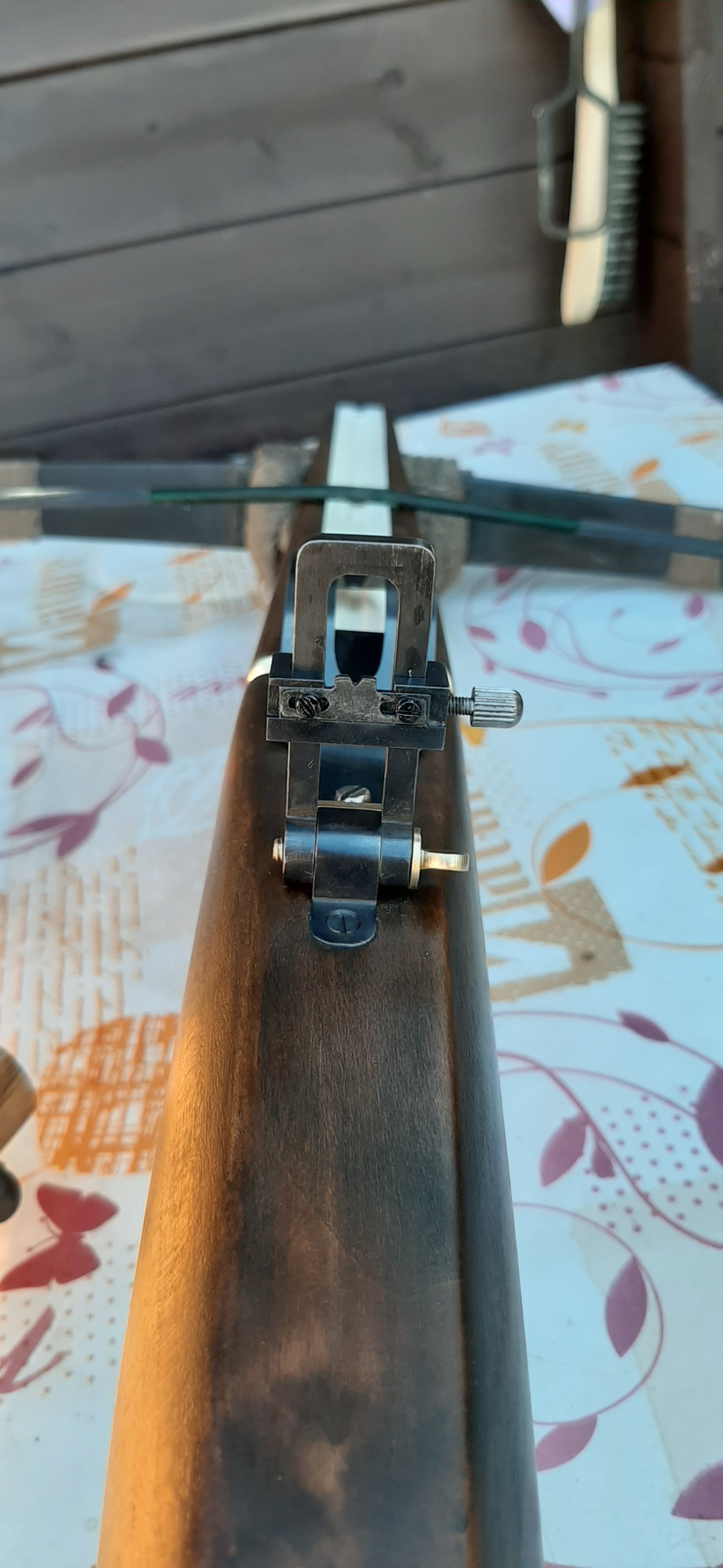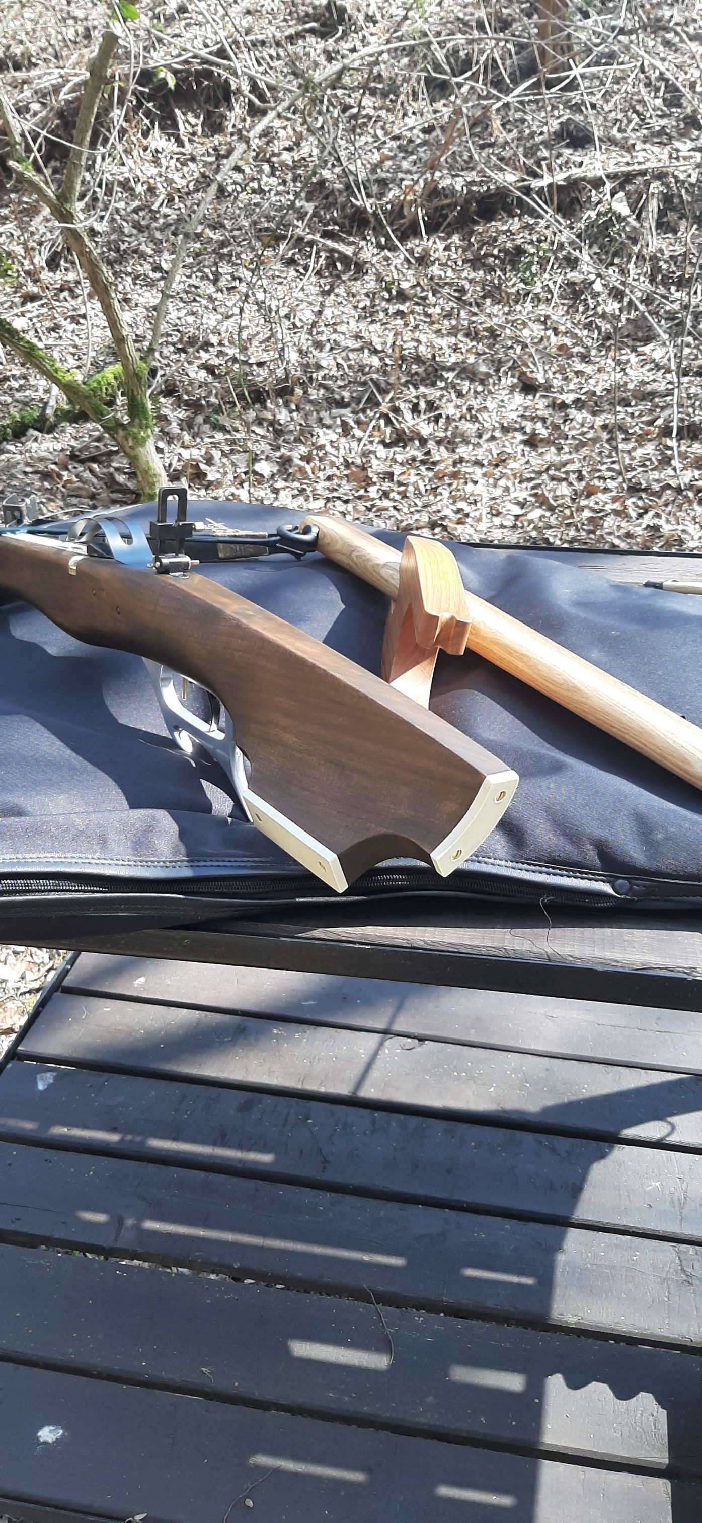 Die Armbrust ist fertig. Eventuell noch ein paar Verzierungen, aber das kann ich auch später noch. Das Stechschloss funktioniert einwandfrei. Hab daheim schon getestet und alles funktioniert super. Auch das Spannen mit der Wippe geht leicht.Abzugbügel könnt ich noch ein bisschen polieren. Aber nachher erst mal Chronytest !