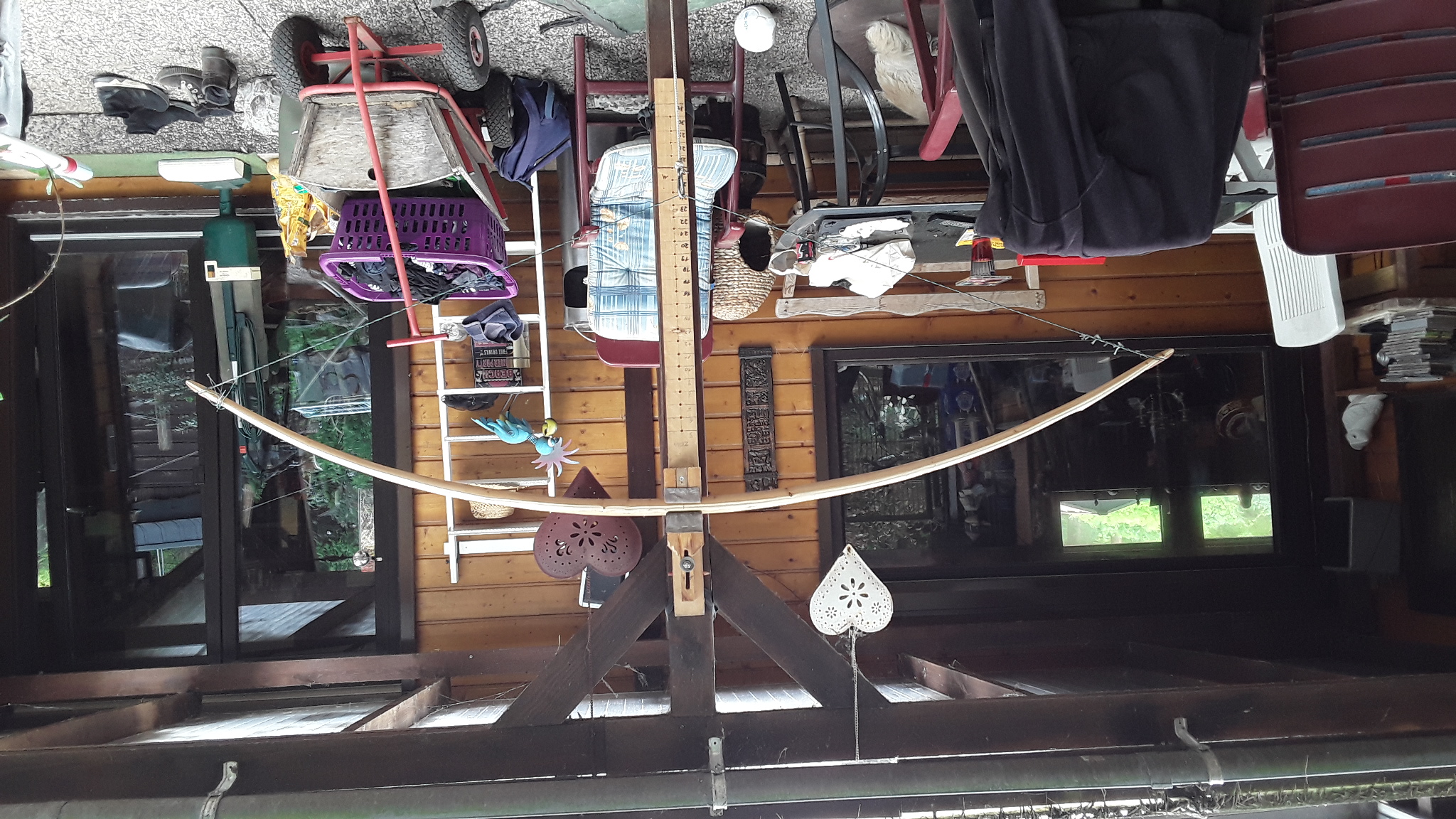 Mit dem dämpfen hat es gut geklappt, einmal noch und dann is die sehne wo sie hingehört ,wollte aber vorher noch den bogen auf Standhöhe bringen, also tillern .Der Bogen is 194 und soll mal um die 70 # haben,sieht doch fast schon gut aus ?würde mich über Tip's freuen .ld im voraus