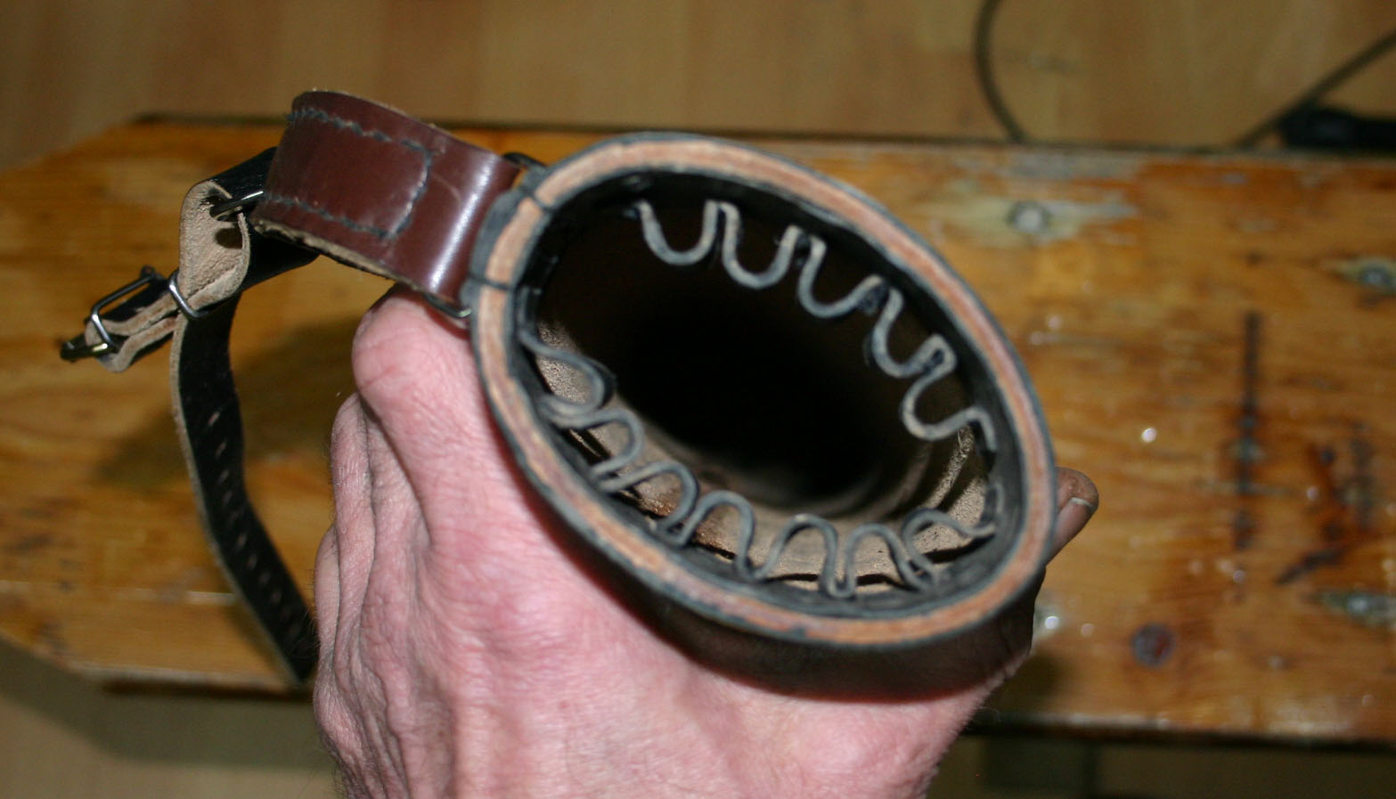 Am Boden hab ich ein Stück Schaumgummi angeklebt zur Schonung des Leders.