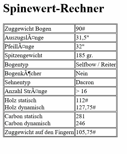 Dir ist schon klar dass, das Zuggewicht eines Bogens im Regelfall (hier für den Spinewertrechner) immer bei 28" AMO angegeben wird.