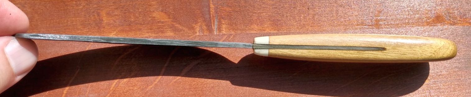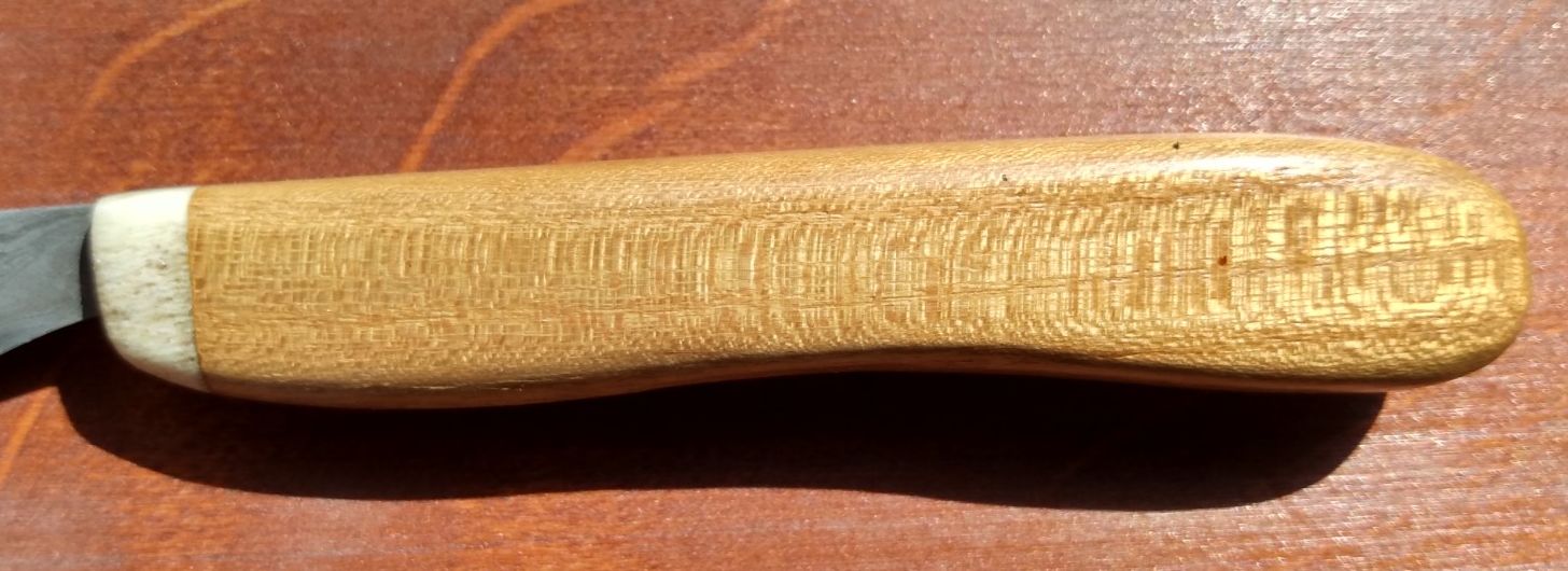 Philipp hatte sich ein kleines Messerchen schmieden dürfen. Zuhause haben wir dann noch einen Griff aus Robinie und Hirschgeweih drangebaut. Philipp hofft, daß es euch gefällt und bedankt sich gleichzeitig nochmal fürs Material, die Schmiede, die Hilfe, undwasauchsonstnochsoundsoweiter. Hier ein paar Bilder: