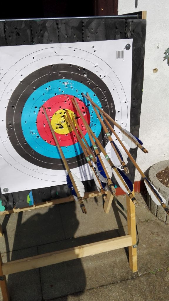 Vor ein paar Wochen habe ich begonnen mit einem 30# Bogen auf ca.3m Distanz mit dem Daumen zu schießen und hatte mir vorher ein paar Videos dazu angeschaut. Als die Pfeile alle sehr gut gruppierten, habe ich die Distanz vergrößert und immer so weiter. Danach das Zuggewicht erhöht und wieder mit kurzer Distanz angefangen und so weiter und so weiter.