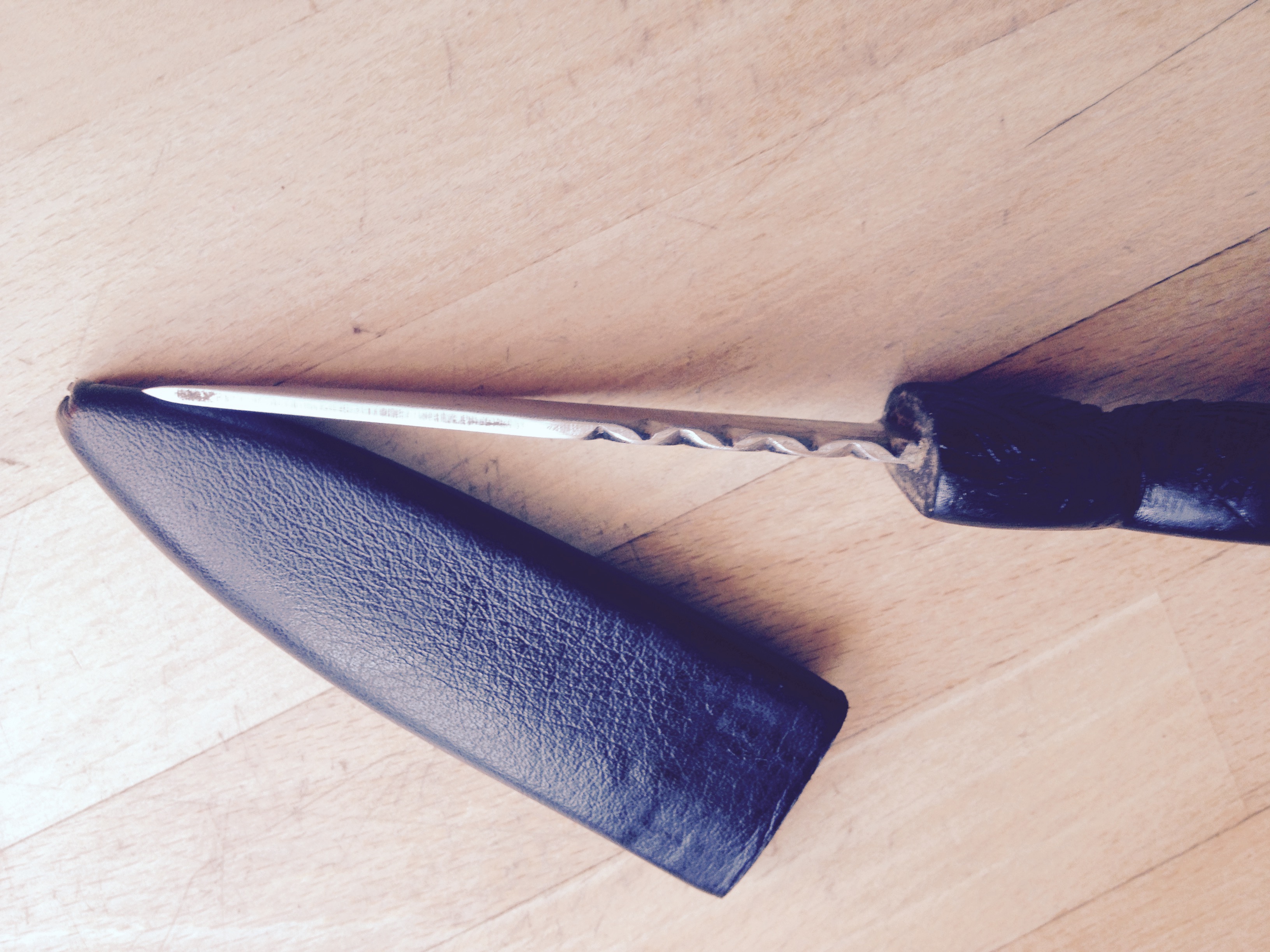 Das Messer trage ich immer wenn ich im Wald unterwegs bin und wurde schön des Öfteren auf die ungewöhnliche Form angesprochen.