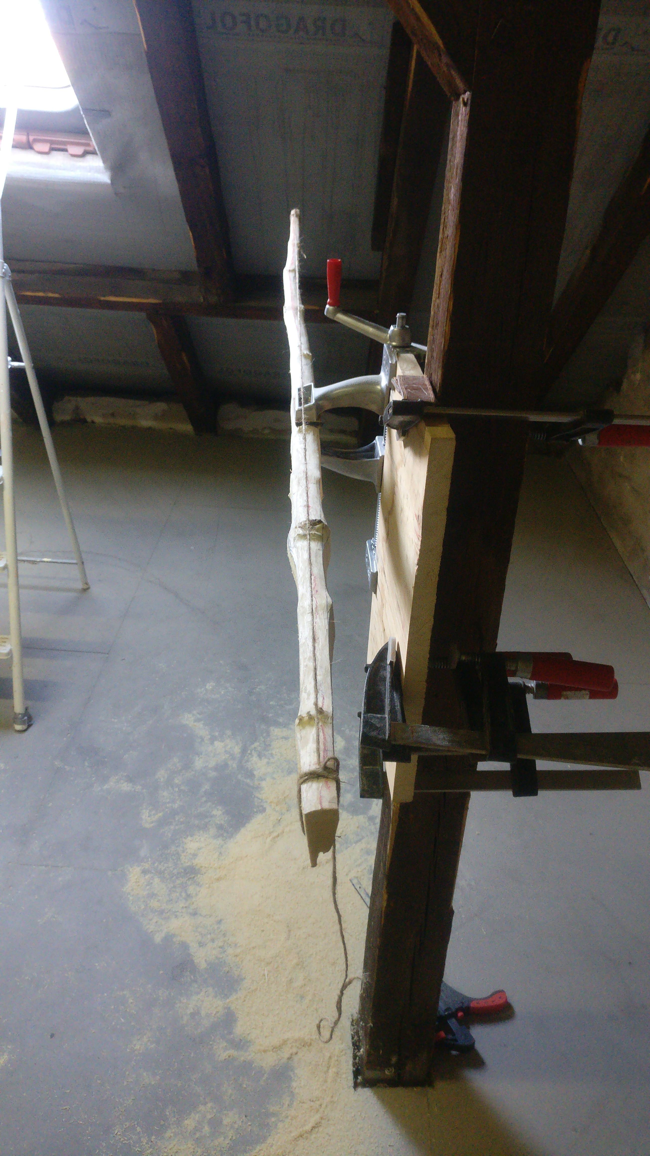 Der ist leider nicht besonders. Habe wohl den Fehler gemacht und habe ihn nicht sofort runter gearbeitet, sondern erst nach ein paar Tagen. Hatte die Enden zwar versiegelt und die Rinde runter (weiter bin ich aus Zeitgründen nicht gekommen) und oh Wunder er ist eingerissen. Musste daher ein gutes Stück wegschneiden und da der Bogen dadurch nach oben gerutscht ist, habe ich ein dickes (Tot-?)Astloch in einem Wurfarm und ein kleines. (Das größere wäre sonst wohl weggefallen.) Die muss ich wahrscheinlich ausdübeln oder? (Kann ich da einfach einen normalen Holzdübel nehmen oder muss der aus gleichem Holz sein? Brauche dann wahrscheinlich auch Epoxidharz oder geht auch Weißleim?) Recht starken Reflex hat er zudem auch. Habe ihn gestern wie empfohlen fixiert um dem ein wenig entgegenzuwirken. Mal gucken wie viel das noch bringt. Da geht es mir ganz wie Fal Gran - Der wird auf jeden Fall eine Herausforderung, wenn er was wird..