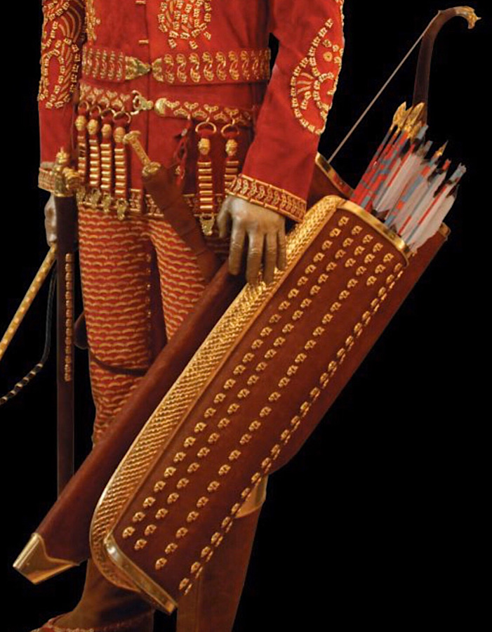 Selbstgebaute Ausrüstungsgegenstände wie Armschutz, Köcher, etc.
