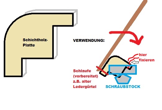 Tipp noch zum Biegen: Du musst FÜHLEN, wie weit das Holz willig mitgeht, und wann es anfängt, sich zu "sperren". Biegst Du über DEN Punkt hinaus, wird es mit hoher Wahrscheinlichkeit reißen! Also niemals mit Gewalt mehr biegen, als es "will"...