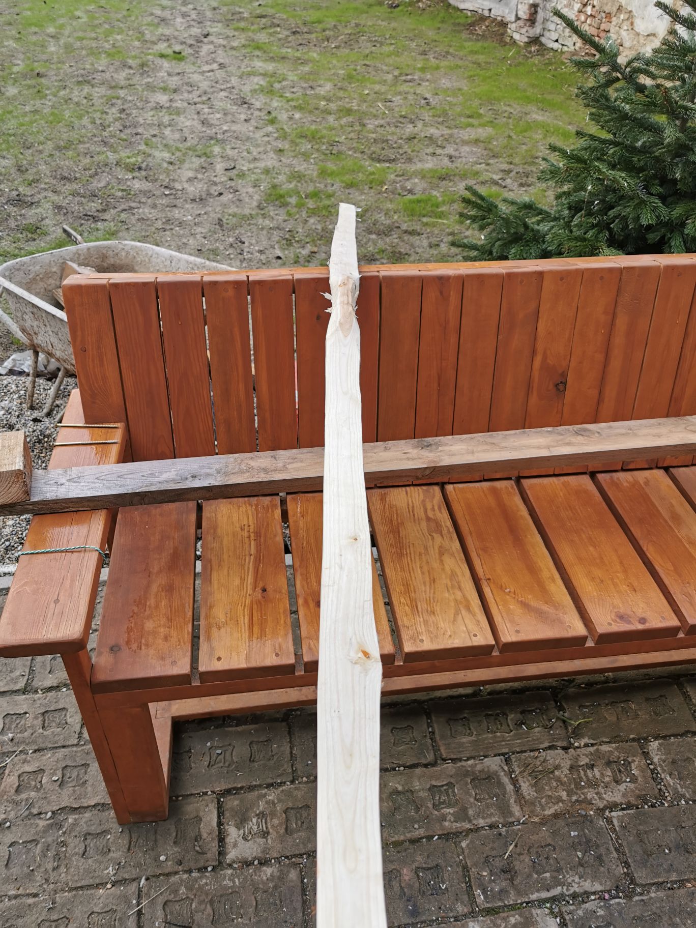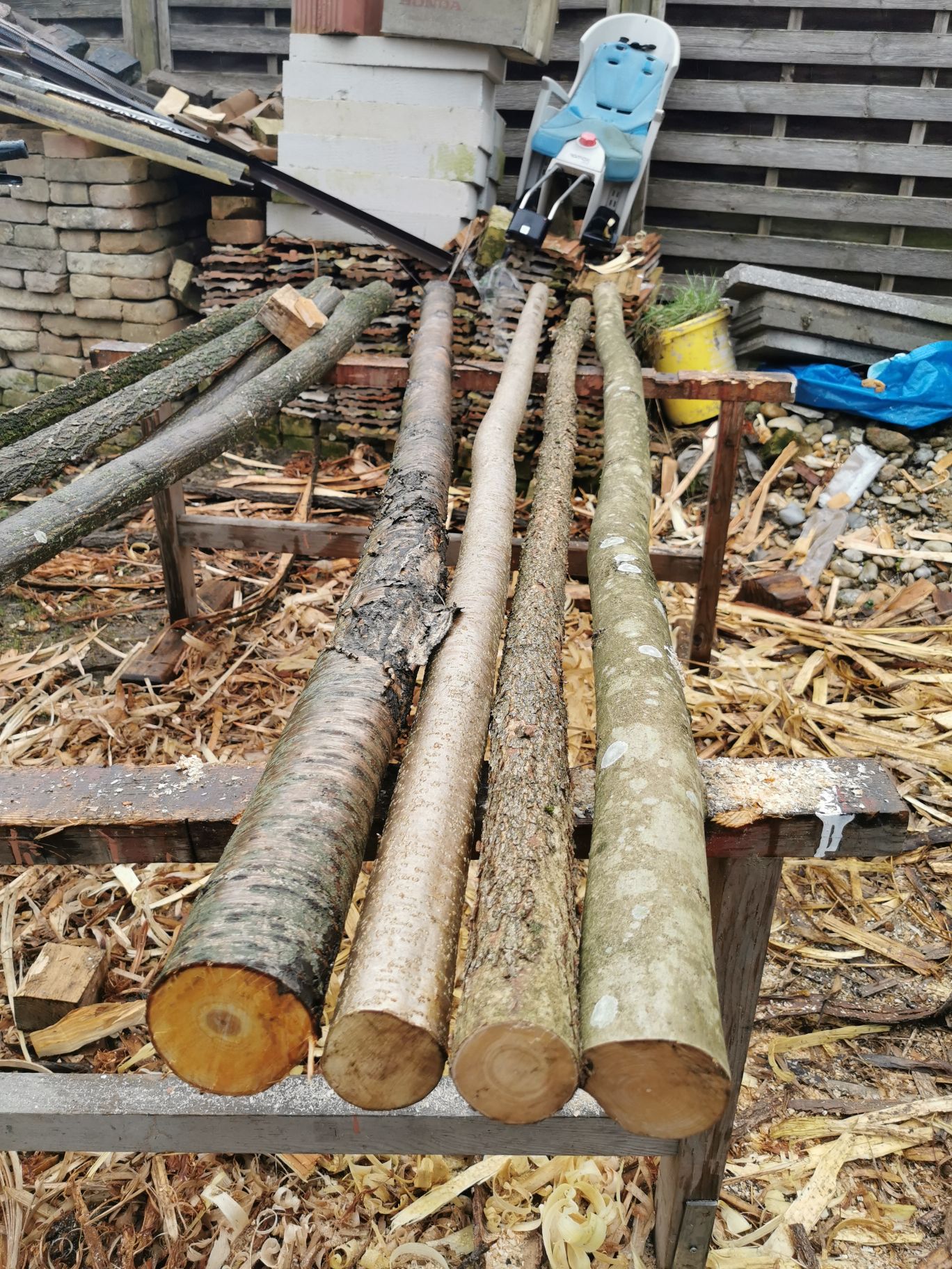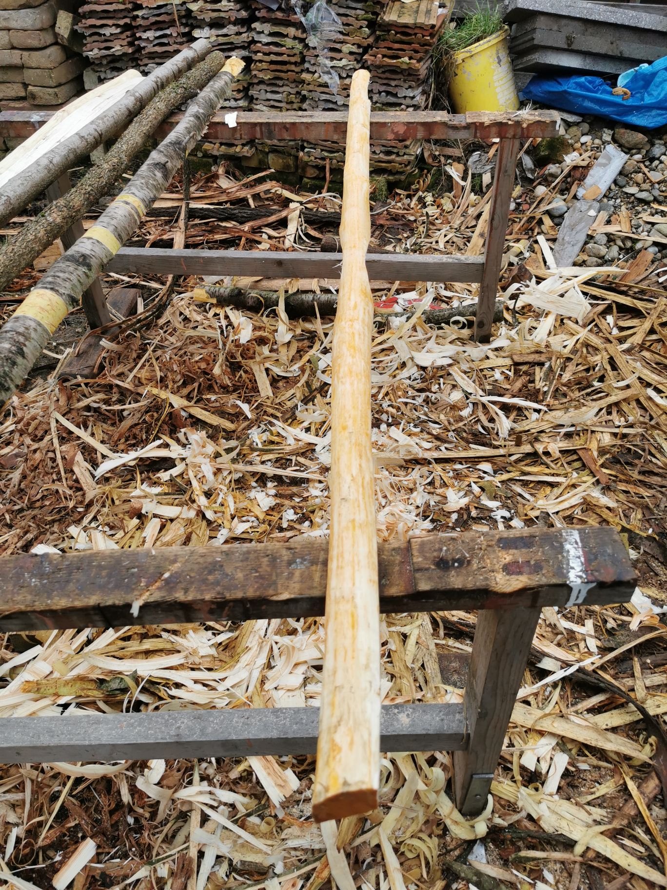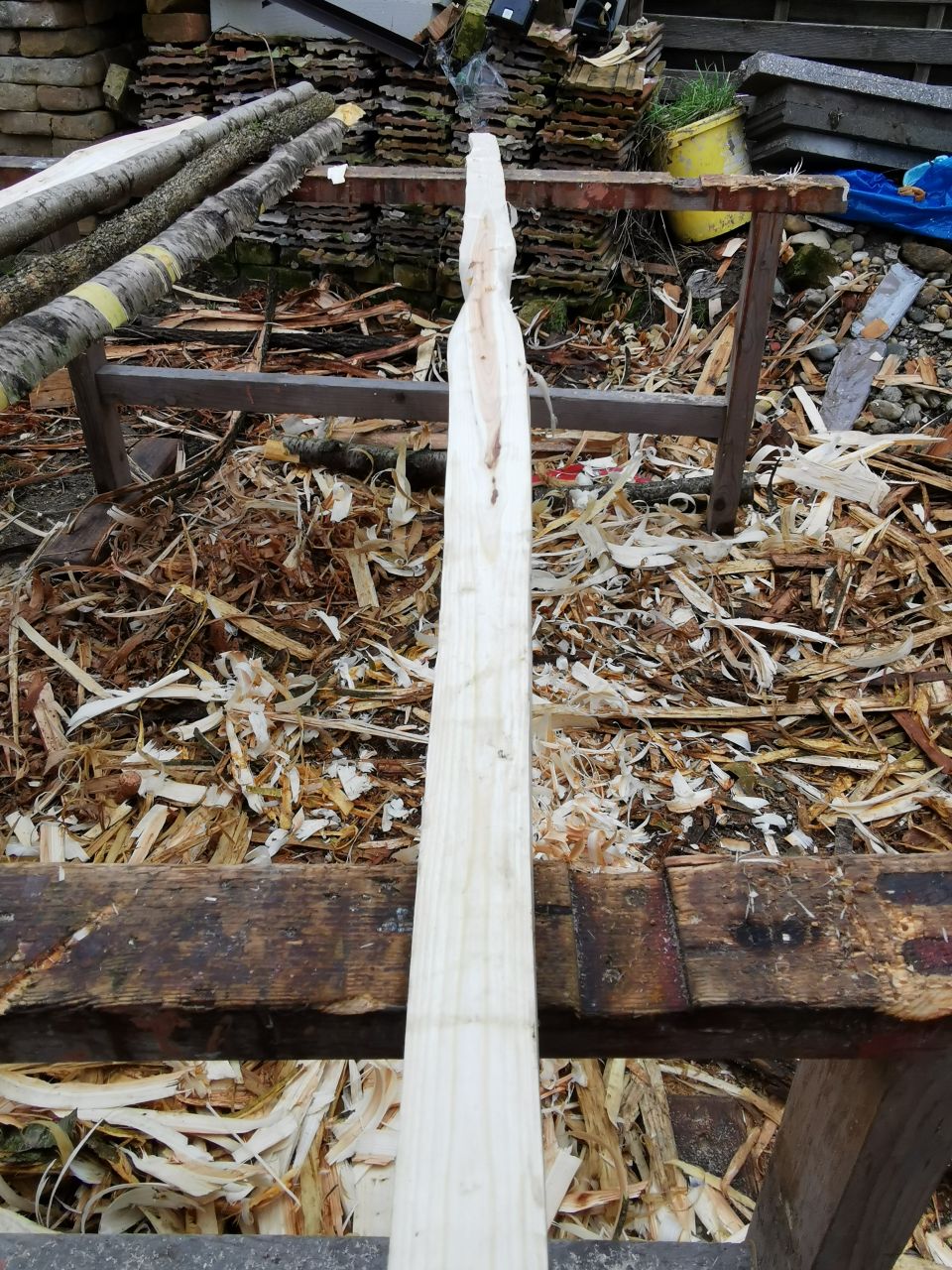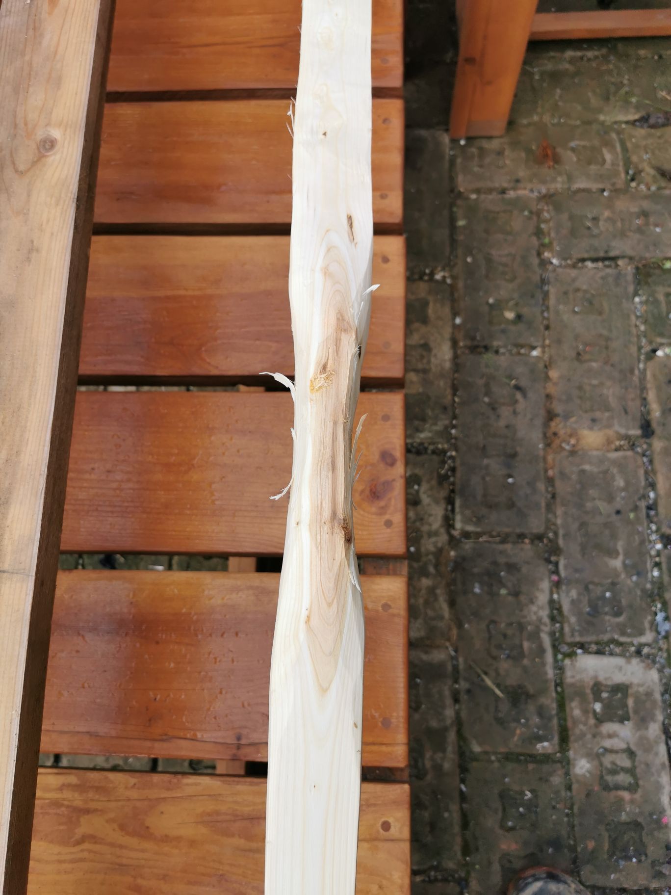 Die esche ist entrindet u gespalten, leider etwas verdreht.