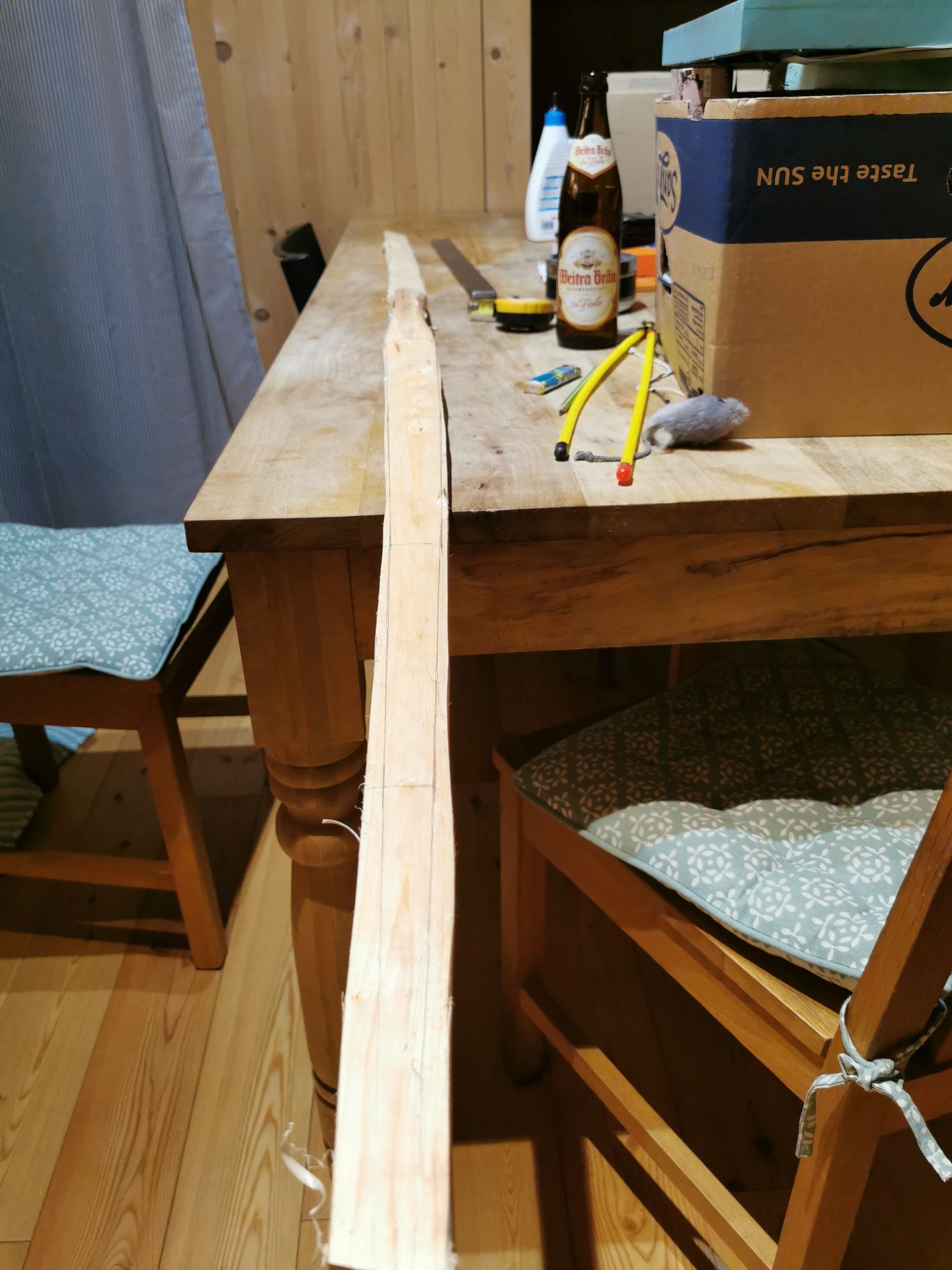 damals noch nicht richtig trocken. Ja, das Holz sieht schön aus.