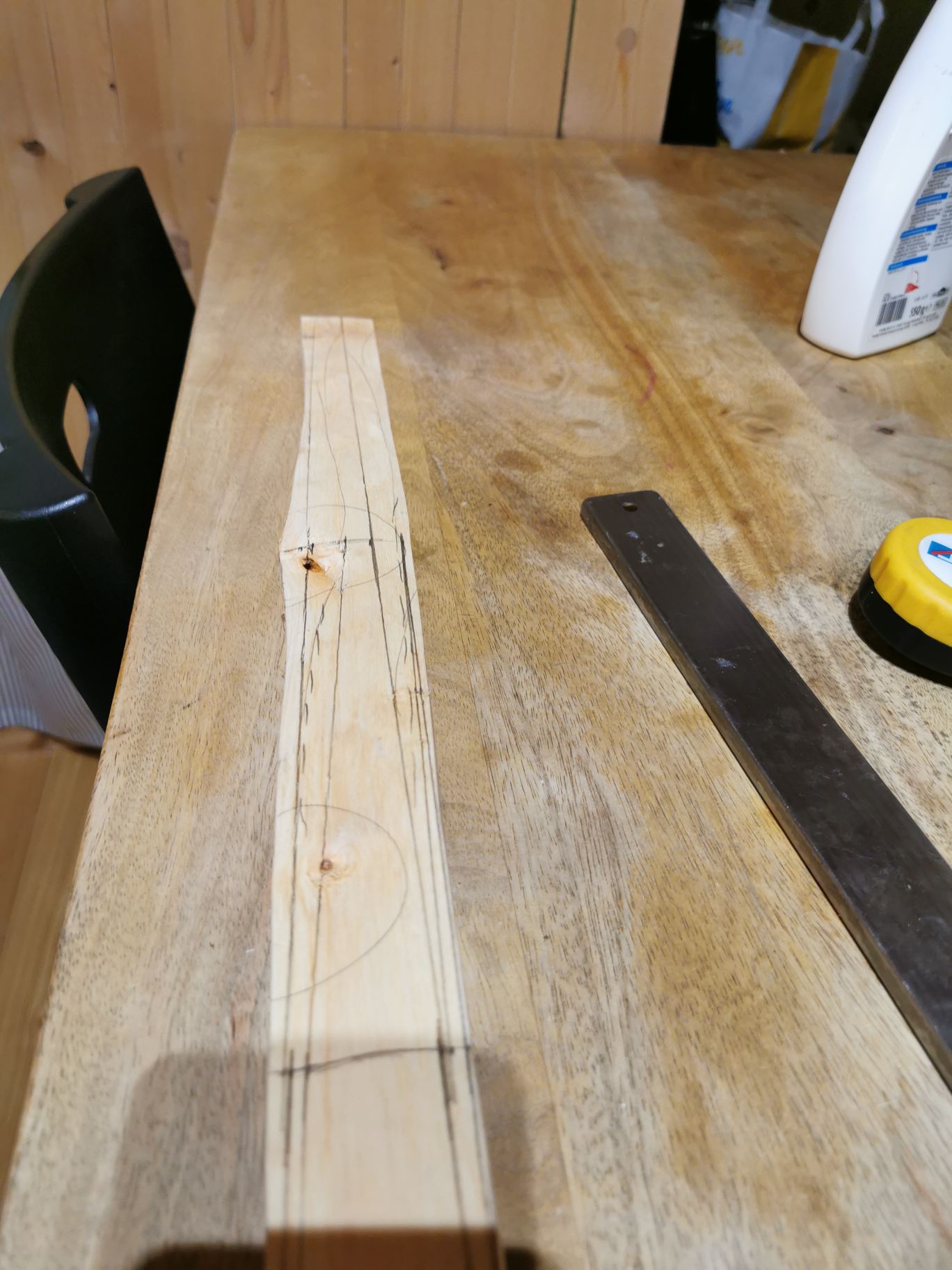 Hab heute die kirsche aus den Zwingen geholt. Schaut, glaub ich, sehr gut aus. Hab jetzt mal breitenmaße angezeichnet, morgen werd ich das runter arbeiten. Gewicht aktuell : exakt 1000g.
