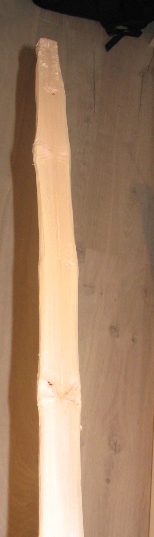 Hallo allerseits. Ich habe etwas länger pausiert ,aber ich hoffe es klappt noch mit dem Bogenbau. Ich habe am 3.1.21 beim Gassi gehen mit meinem Hund ein Hartriegelstämmchen gefunden, dieses ist mir einfach Nachhause nachgelaufen .Wie gesagt ich habe ihn nicht selbst geerntet, aber ich hoffe das ich trotzdem mitmachen darf. Er muss zwischen den Feiertagen abgesägt worden sein, dass Stämmchen hat 2 Astgabeln eine unten und eine oben und dazwischen noch einige Astknoten. Zwischen den Gabeln misst er ca.154cm ,im Durchmesser hat er 6cm.Ich habe die Astgabeln mit einbezogen und verwende sie als Recurve. Bin dann bei 163cm. Entschuldigt bitte, dass ich erst jetzt angefangen habe zu posten. Ich hatte Probleme die Bilder von meinem Handy ,ins Forum zu stellen . In zwischen habe ich schon einmal die Rinde runter, die Wurfarme grob rausgearbeitet und den Griff etwas bearbeitet. Bis jetzt verwendetes Werkzeug: Säge, Ziehmesser und Ziehklinge. Ich hoffe, dass ich euch bald bessere Bilder zeigen kann. Entschuldigt, dass die ersten Bilder etwas durcheinander sind. Computer ist nicht mein Ding